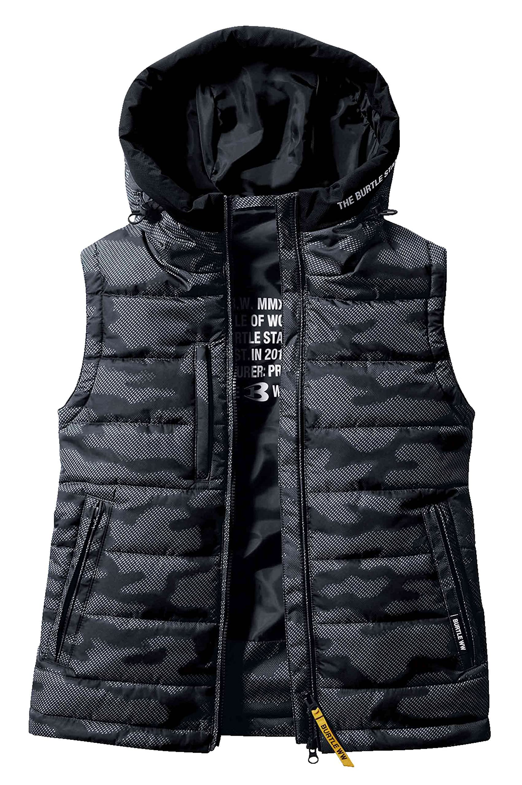 バ?トル 防寒フーディベスト 5034?64?XXL アーバンブラック 秋冬用 素材 マイクロリップライトシェル 耐久撥水加工 耐水圧10000mm 透湿性5000g/㎡/24hrs(TPUラミネートコーティング) 混率 表地 ポリエステル100% 裏地 ポリエステル100% バスト 124cm 肩幅 49cm 着丈 73cm 裾廻り 120cm ●薄手ながら防水性、撥水性、防風性を高い次元で備えたライトシェル素材です。●高めに設定したフードカラーが首元をすっぽり覆います。