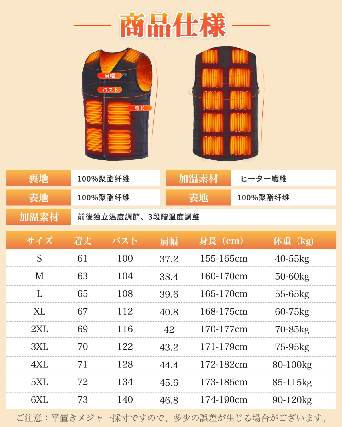 ![【在庫処分】[PandaRio] 電熱ベスト 大きいサイズ ヒーターベスト 【16箇所発熱 前後独立温度制御】 S-6XL 速暖 Vネック 超軽量 電熱ジャケット 3段階温度調整 USB給電 屋外作業 バイク 通勤通学 男女兼用 40-120kg対応](https://baseec-img-mng.akamaized.net/images/item/origin/a6474040e2c7f2eef61e8acfc36587d2.jpg?imformat=generic)