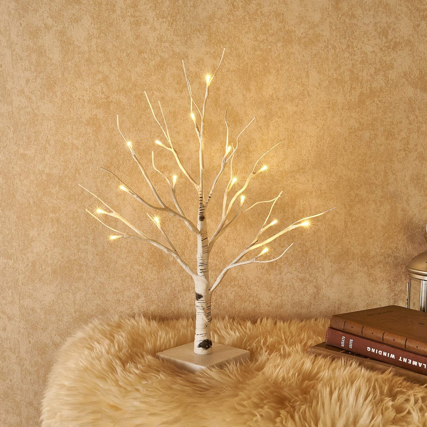 Hairui 白樺 LED ブランチツリー イルミネーション 高さ45cm 24LED 枝 ツリー インテリア シラカバのライト 卓上 飾り 北欧 おしゃれ
