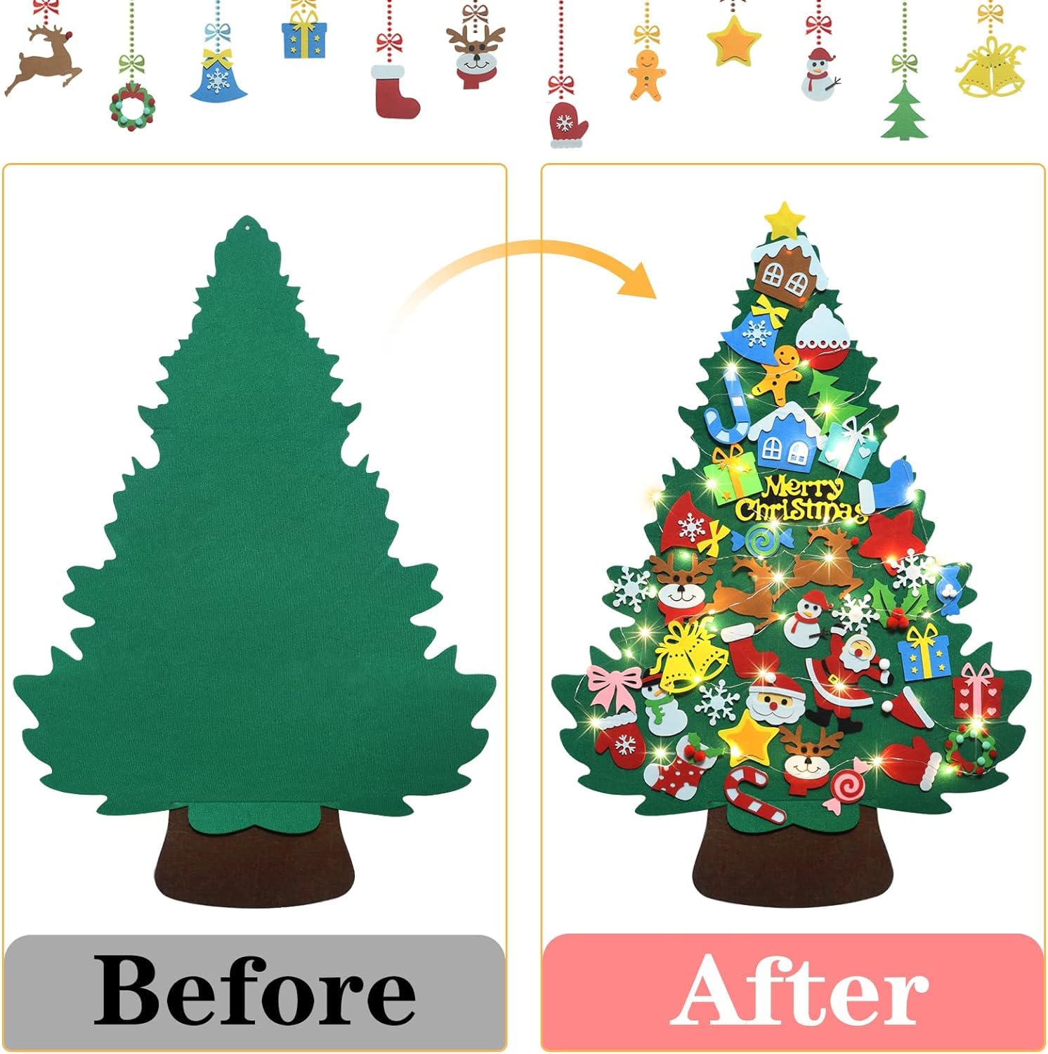 ??【パッケージ内容】フェルトのクリスマスツリー*1,LEDライト(単三電池3本必要、別途購入)*1、クリスマスツリー オーナメント42点セット(具体的な装飾パターンについては写真を参照)、用中なにか問題がありましたらお気軽にご連絡ください。