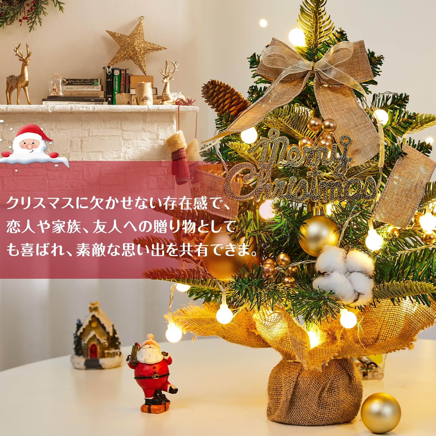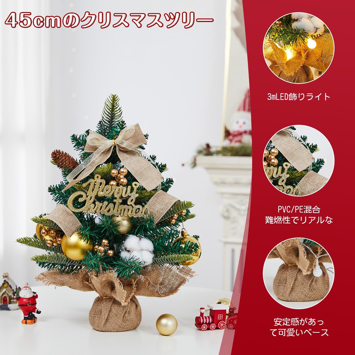 【在庫処分】【2025新登場】 クリスマスツリー 卓上 ミニツリー 45cm 卓上ツリー 3mLED飾りライト付き 組立簡単 収納便利 クリスマス飾り セット 豪華 北欧風 屋内 商店 部屋 クリスマスグッズ 日本語説明書付き
