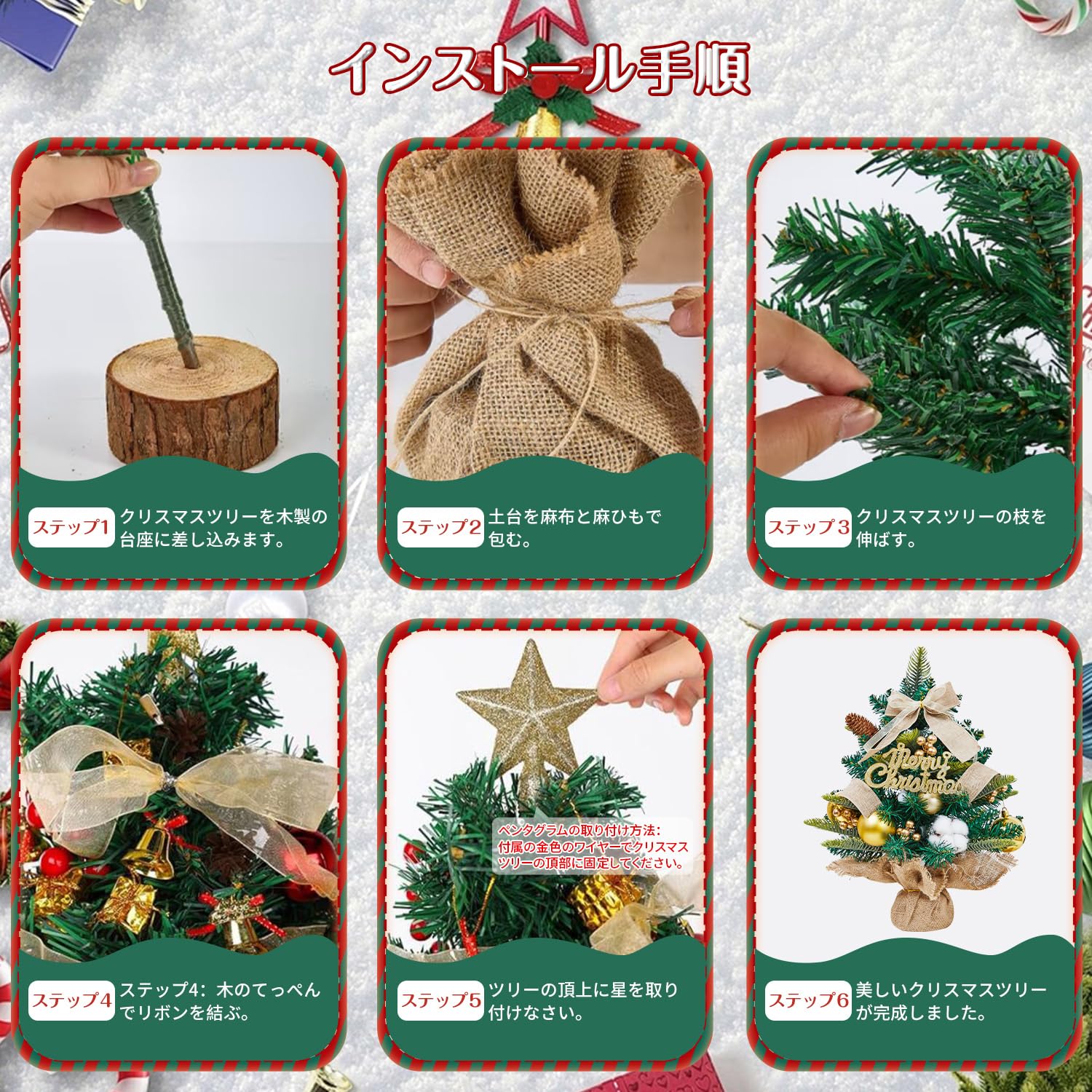 ??【どんな場所にもぴったり】このかわいらしいテーブル用クリスマスツリーは、クリスマス気分を盛り上げてくれます。デスク、ダイニングテーブル、オフィスデスク、窓辺、またはショップの窓辺などに置けば、クリスマスを明るく彩り、ご家族やゲストに素晴らしいクリスマスの思い出を残すことができます。また、ご家族や友人へのクリスマスプレゼントとしても最適です。
