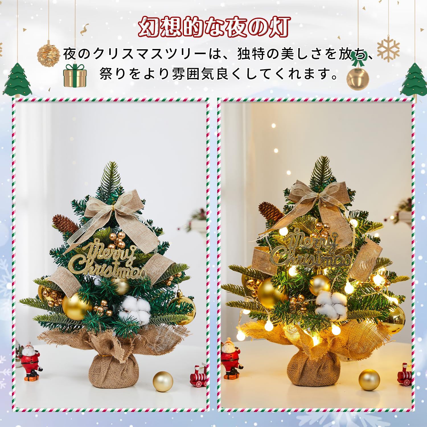 【2025新登場】 クリスマスツリー 卓上 ミニツリー 45cm 卓上ツリー 3mLED飾りライト付き 組立簡単 収納便利 クリスマス飾り セット 豪華 北欧風 屋内 商店 部屋 クリスマスグッズ 日本語説明書付き