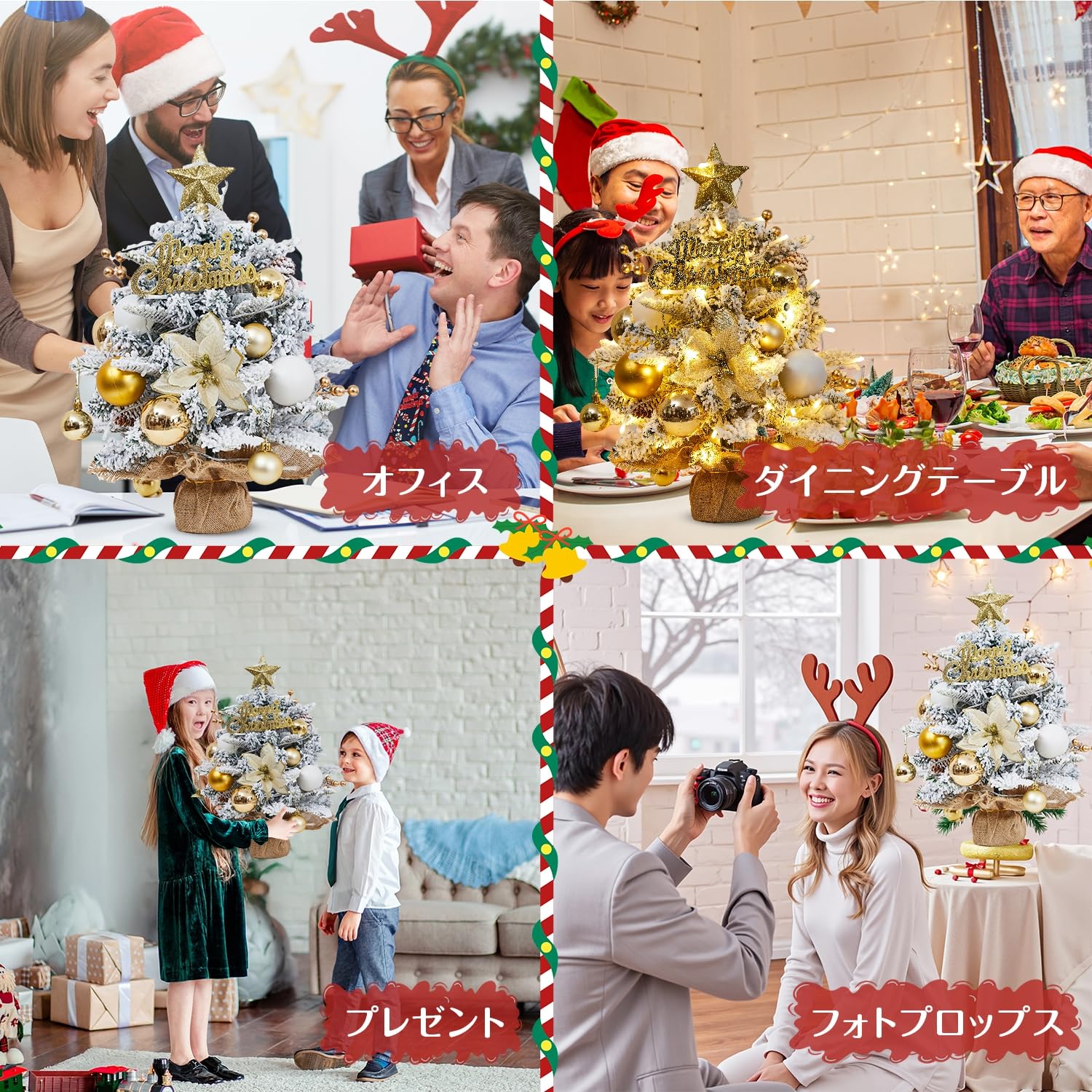 【数量限り】【2025新登場】 クリスマスツリー 卓上 ミニツリー 45cm 雪化粧 卓上ツリー 3mLED飾りライト付き 組立簡単 収納便利 クリスマス飾り セット 豪華 北欧風 屋内 商店 部屋 クリスマスグッズ 日本語説明書付き