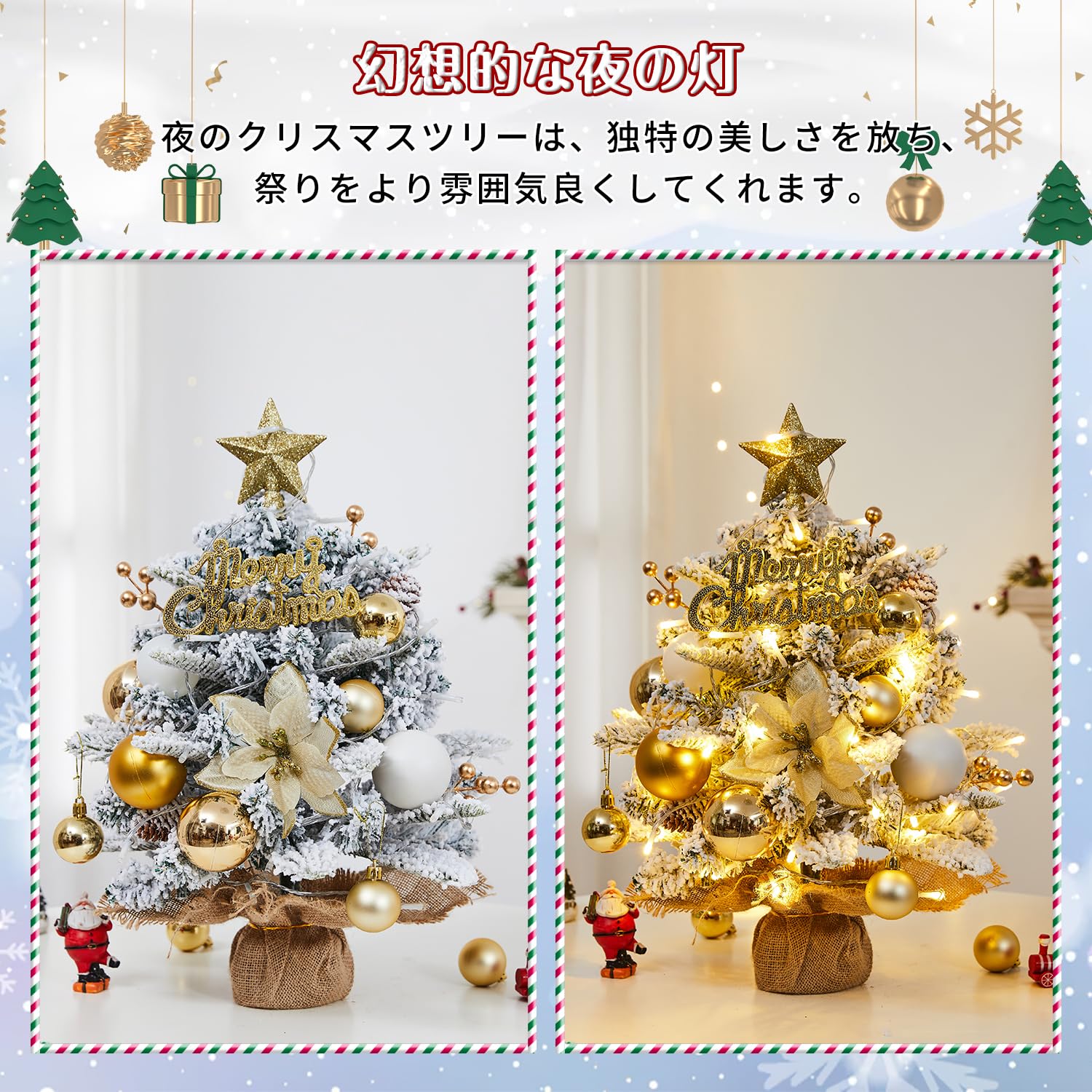 【2025新登場】 クリスマスツリー 卓上 ミニツリー 45cm 雪化粧 卓上ツリー 3mLED飾りライト付き 組立簡単 収納便利 クリスマス飾り セット 豪華 北欧風 屋内 商店 部屋 クリスマスグッズ 日本語説明書付き