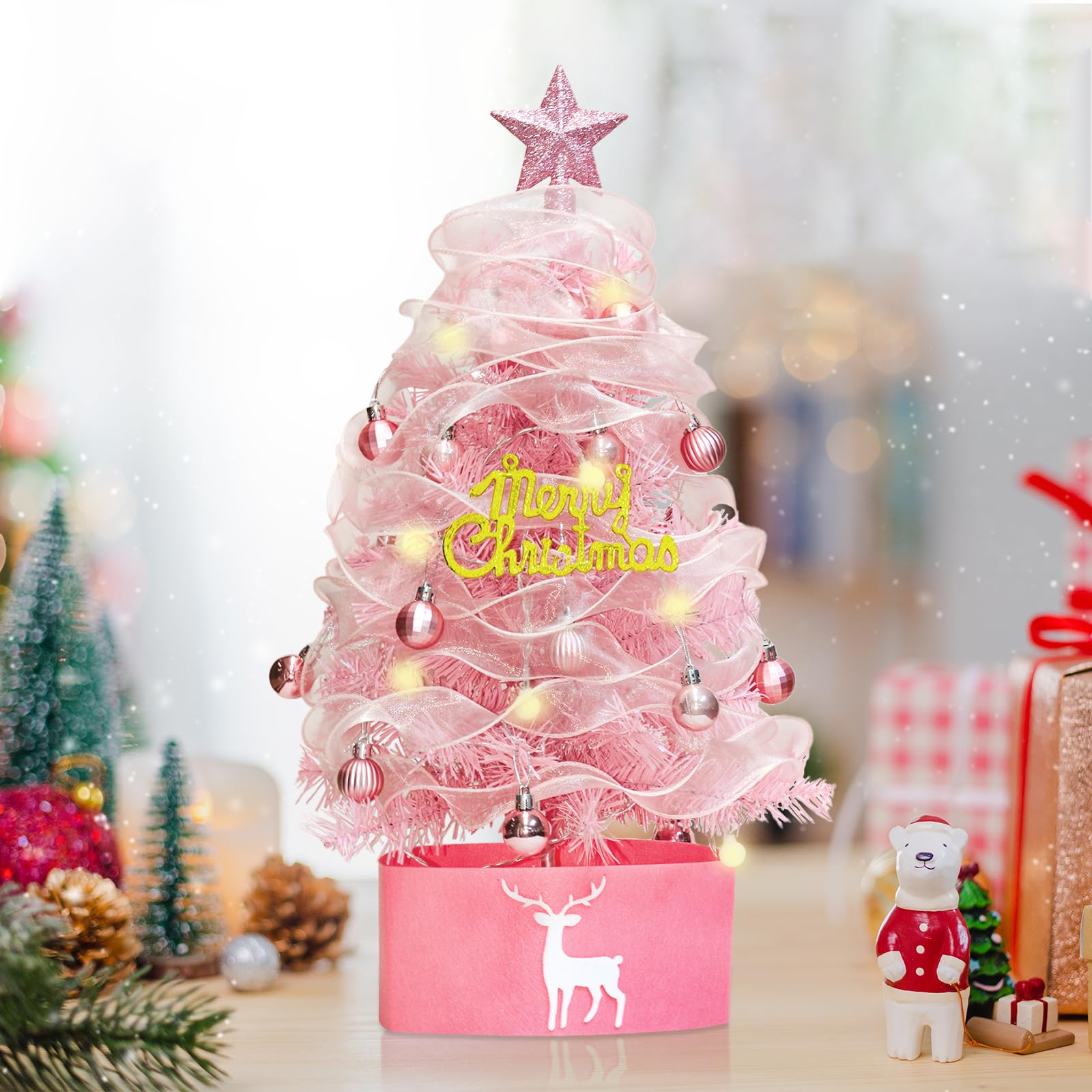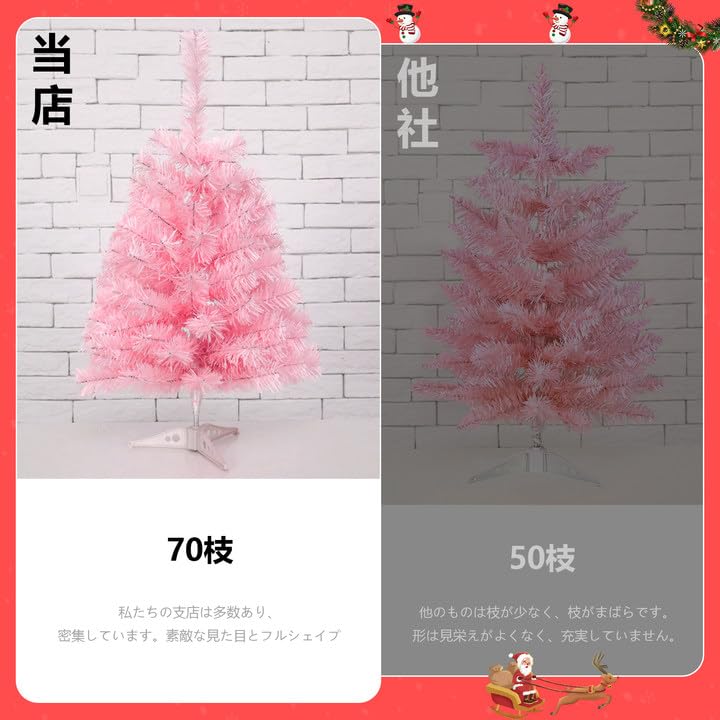 【BEAUTY PLAYER】ミニクリスマスツリー ピンク 卓上 60cm クリスマス装飾 LEDイル ネーションライト オーナメント付き おしゃれ 高級クリスマスツリー
