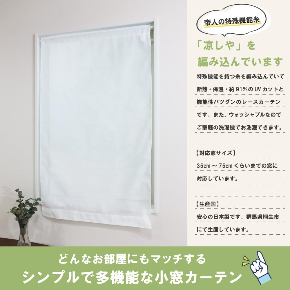 加栄レース(Kaei Lace) 小窓レースカーテン 【Lottery ロト】 28025 ホワイト(約70cm幅×約120cm丈)小窓 カフェカーテン 遮熱 断熱 UVカット 目隠し 北欧調 幾何柄 日本製 人気 エコリエ 小窓用ミラーレースカーテン