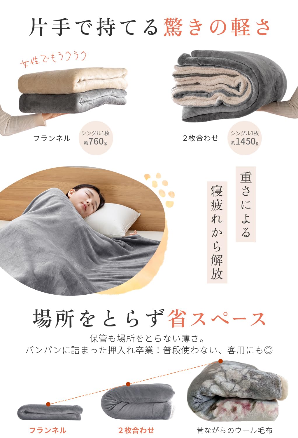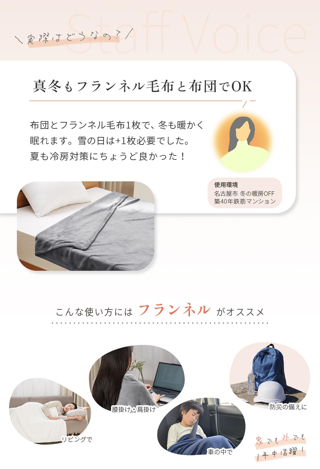 【ふんわり、とろける肌ざわり】高密度フランネルマイクロファイバー生地で、手ざわりは「ふわふわ」「とろとろ」。体をやさしく包み込むから、思わずうっとり。
