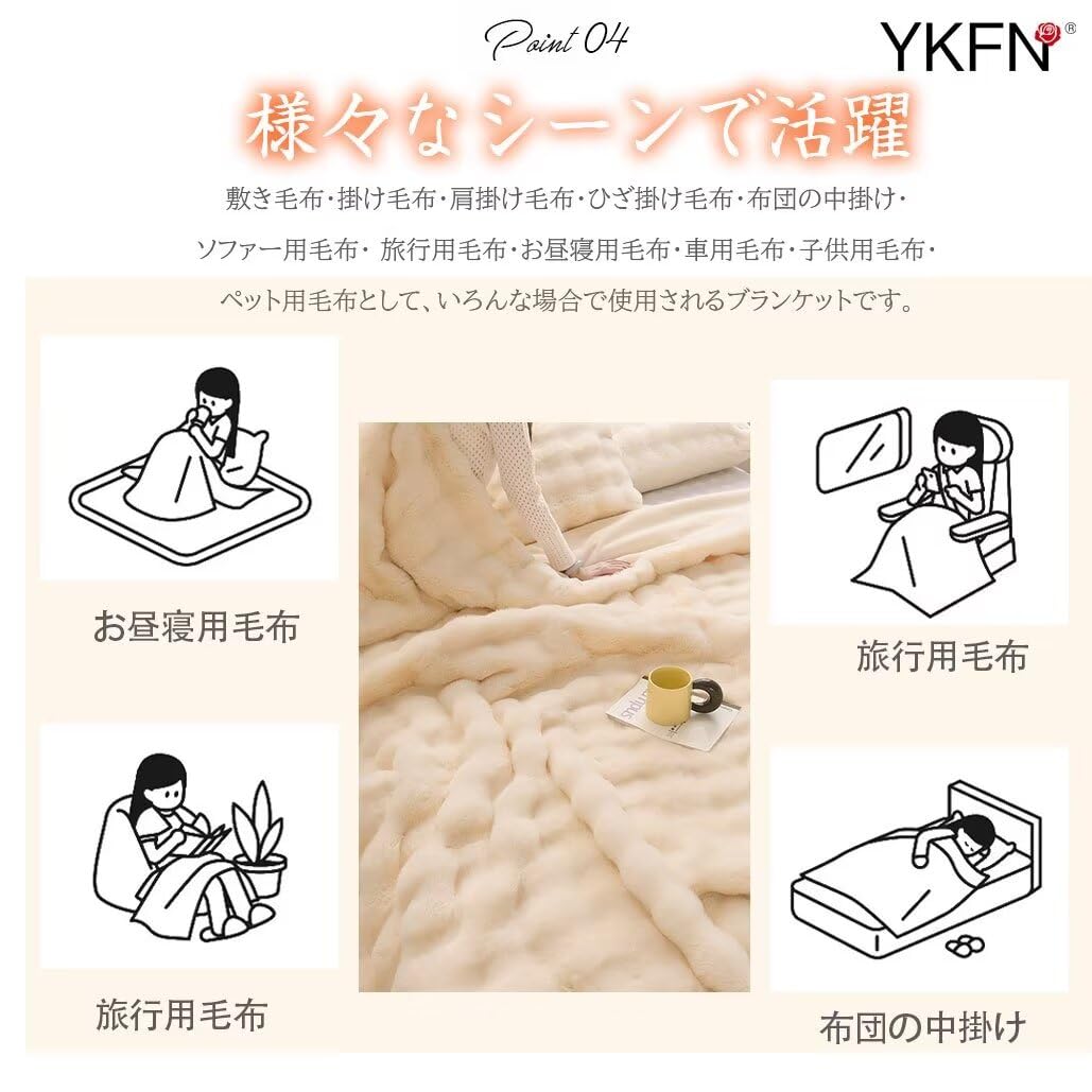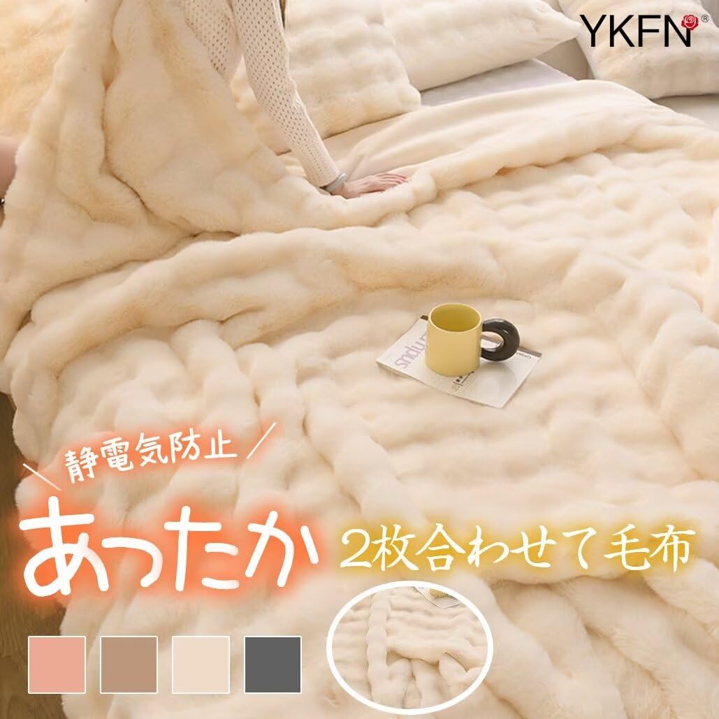 YKFN ブランケット 毛布 ダブル 冬 厚手 うさ毛布 ふわふわ あったか毛布 2枚合わせ毛布 抗菌防臭防ダニ 吸湿発熱 静電気防止 暖かい毛布 掛け毛布 掛け布団 もこもこ毛布 マイクロファイバー 保温 軽量 洗える 180x200 ベージュ