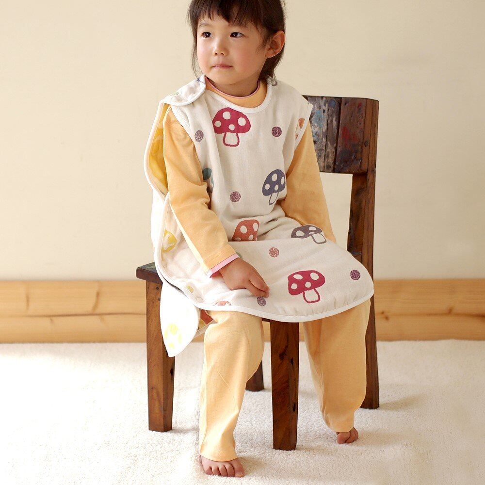 10mois(ディモワ) - Hoppetta ふくふくガーゼ(6重ガーゼ) トドラーキッズスリーパー コットン100% 2~7歳頃まで champignon 着丈64cm 7240