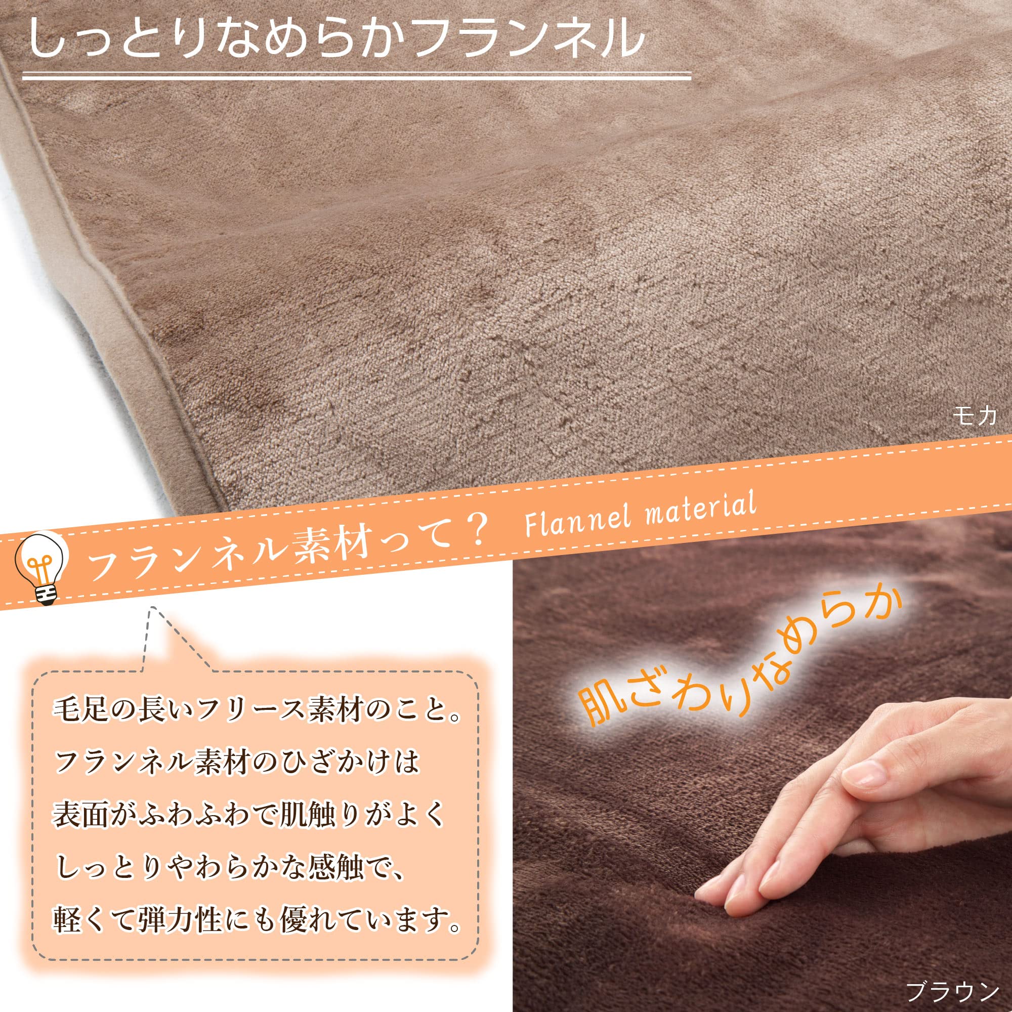 【ふわふわで暖かい】この電気ひざ掛けは、なめらかな肌触りが特徴のフランネル生地で作られています。 フランネルはふんわりと柔らかい素材なので、電気を入れなくても触っているだけでぬくもりを感じられます。 ダークブラウン、グリーン、イエロー、グレー、モカの5色をご用意しました。