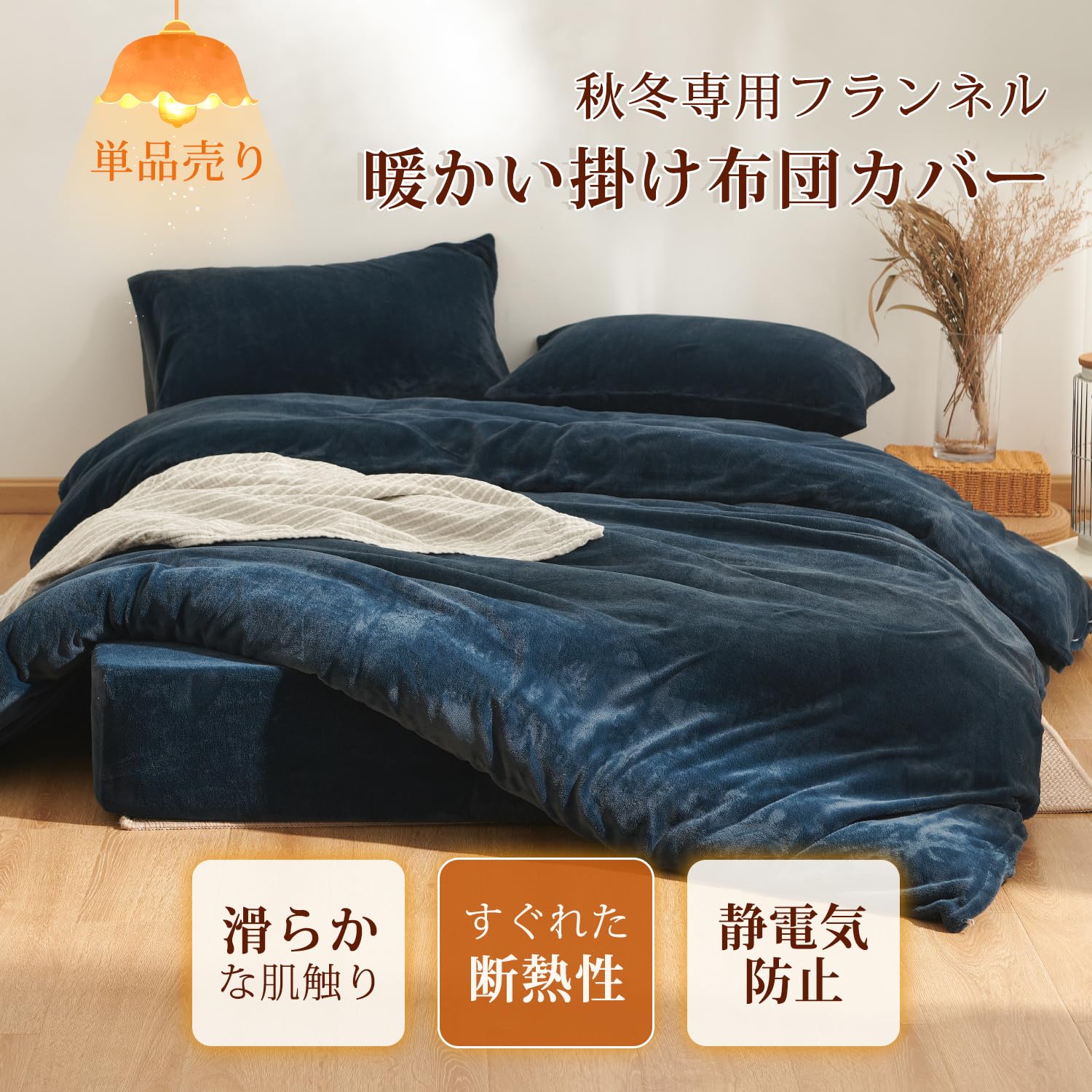 クモリ(Kumori) 掛け布団カバー シングル 暖かい フランネル 「極暖シリーズ」 持続温感 冬用 マイクロファイバー 吸湿発熱 なめらか 毛布タッチ 静電気防止 防寒対策 単品売り 掛けふとんカバー 洗える 150X210cm ネイビー