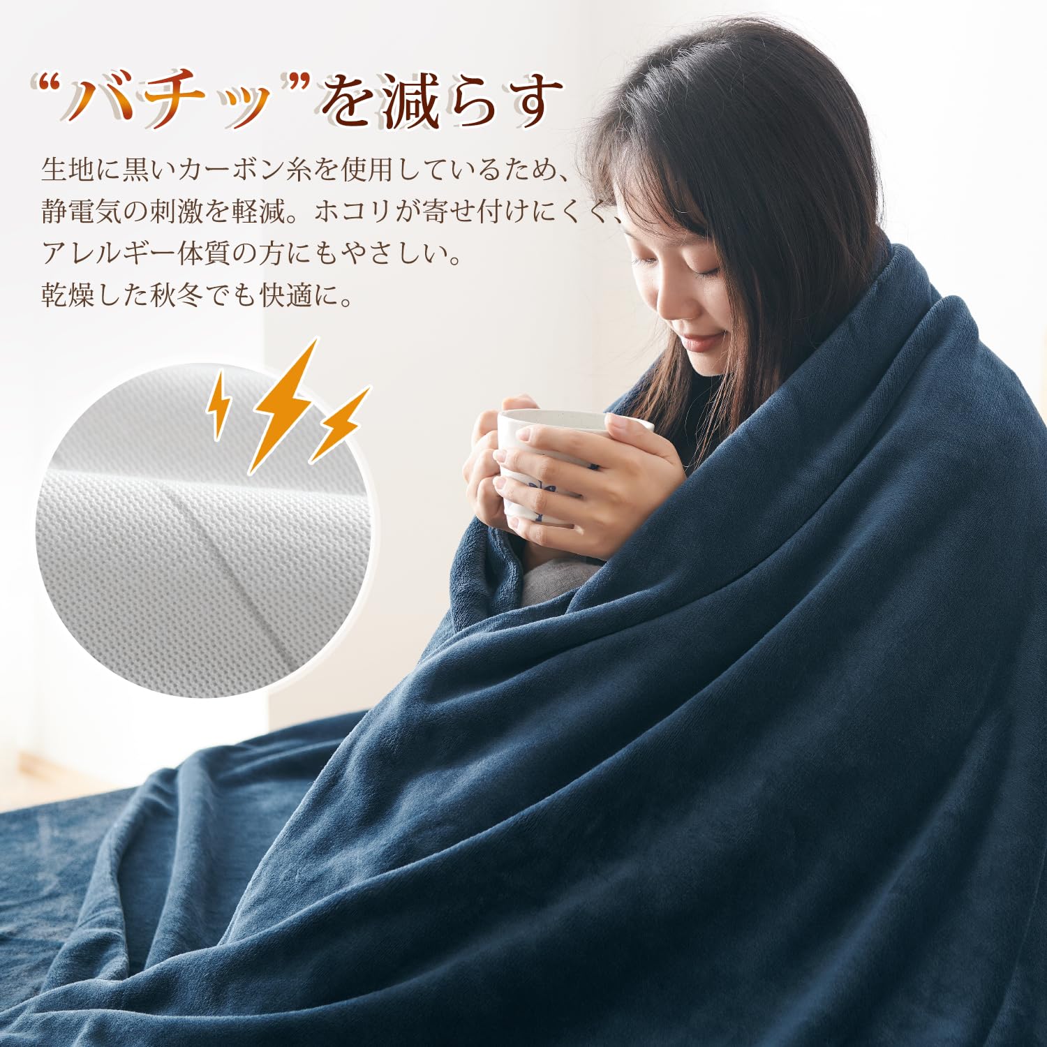 【静電気防止加工】カバーには静電気抑制のカーボン糸を使用しているので、パチパチと不快な静電気が起こらず、静電気によるストレスが解消されます。