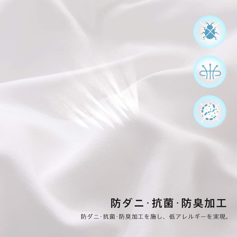 【抗菌・防臭・防ダニ】中わたには、防ダニ・抗菌・防臭性に優れた帝人「マイティトップII」を50%使用。細菌の繁殖を抑制して嫌な臭いを防ぎ、ダニを寄せ付けません。