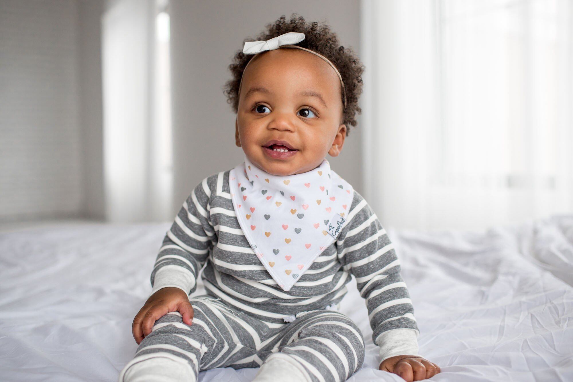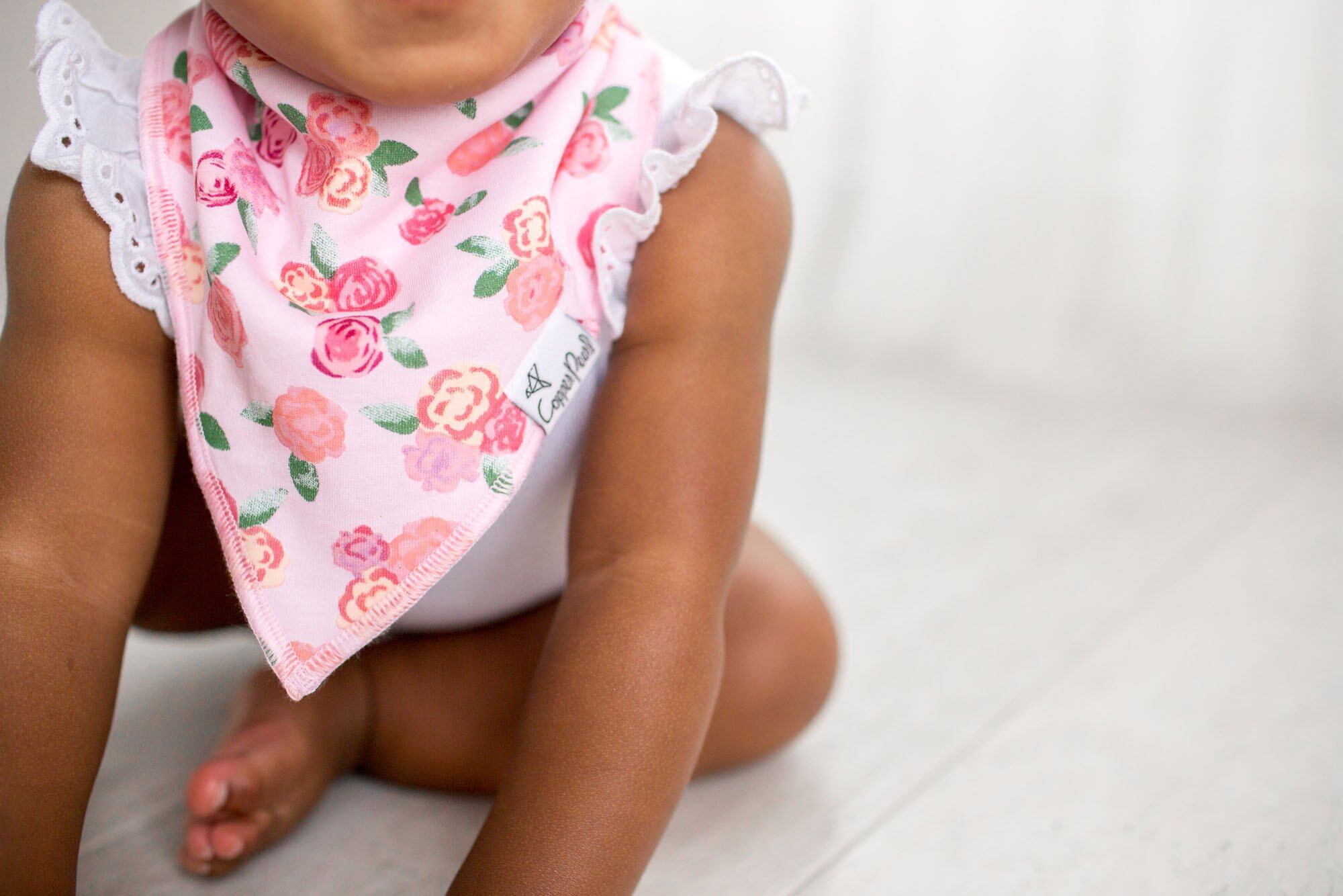 アメリカ生まれのベビー用品ブランド 「コッパーパール」から届いたオシャレなよだれかけ『バンダナビブ 6枚セット』。 ●コッパーパールの防水スタイセットの特徴は、最先端の流行を取り入れたオリジナルデザインの生地にあります。何にでも合わせ易く、どんなスタイルにもベストな仕上げのワンポイントになってくれます。 ●スタイリッシュなデザインの表地(綿)と吸水性と速乾性に優れた白い裏地(ポリエステル)の2枚仕立てのよだれかけ。 表地がキャッチしたよだれの水分を裏地が吸い込み、毛細管現象によって素早く裏地の全面に広げます。それによって水分と空気が触れる面積を広くして速乾を実現。裏地のポリエステルは毛細管現象による浸透速度が速いので、バンダナビブの裏地はいつもサラサラです。よだれの多い赤ちゃんでもお洋服が濡れにくいのはそのような仕組みなのです。 ●首元の表地を3cmほど立ち上がるようにデザイン。首やあごに程よくフィットしよだれをキャッチします。 ●サイズ調整は、2つずつ付いたニッケルフリーのスナップ。このスナップはベビーにはなかなか外せませんが、ご両親には簡単に付け外しできます。 ●4枚セットになったバンダナビブは出産祝いに最適です。また、クリスマスや子供の日にプレゼントすればベビーがもっとファッショナブルに! 男の子デザインも女の子デザインも豊富【お手入れ方法】 ※洗濯機可
