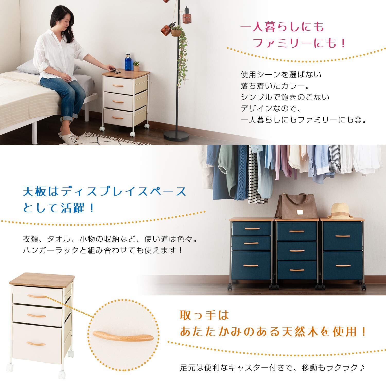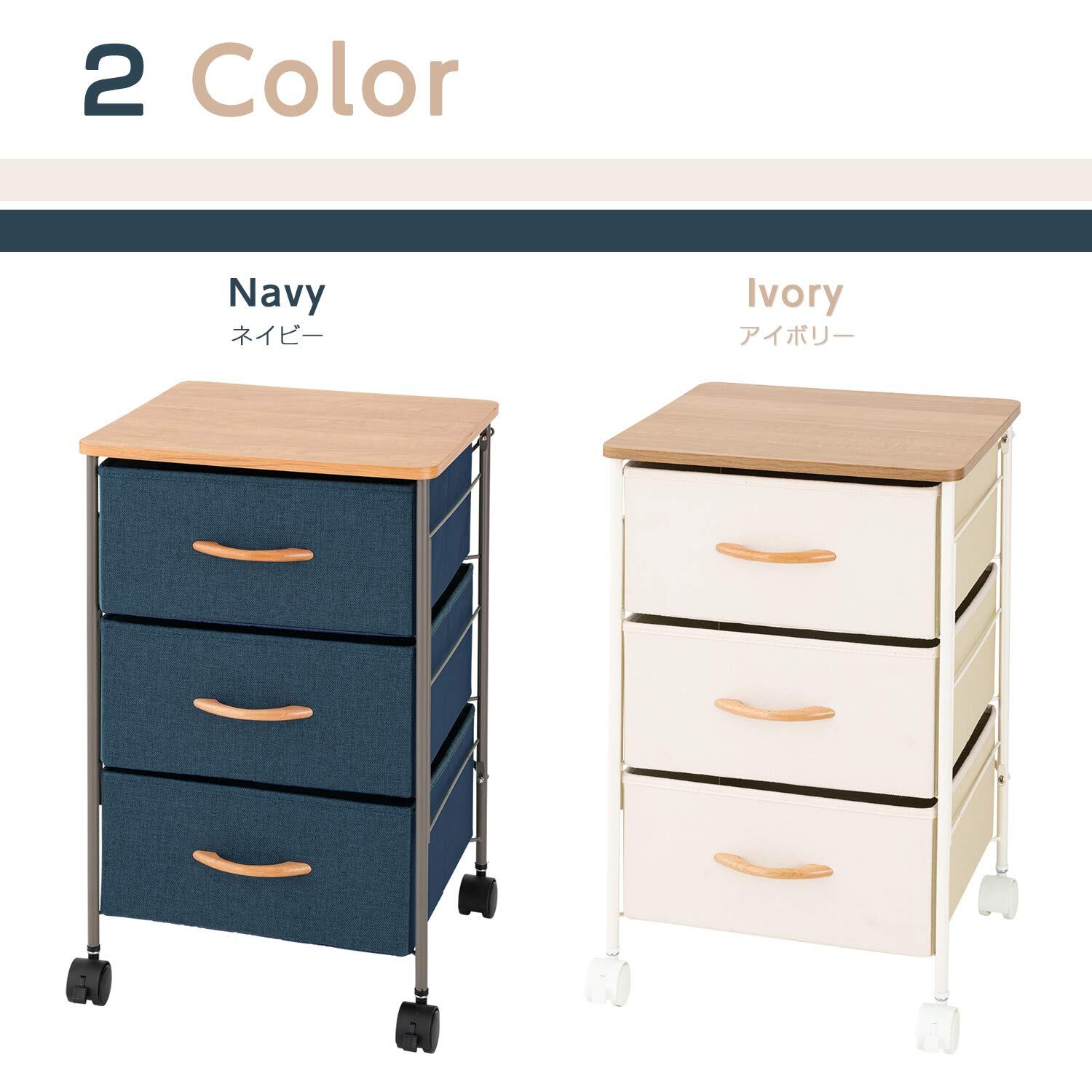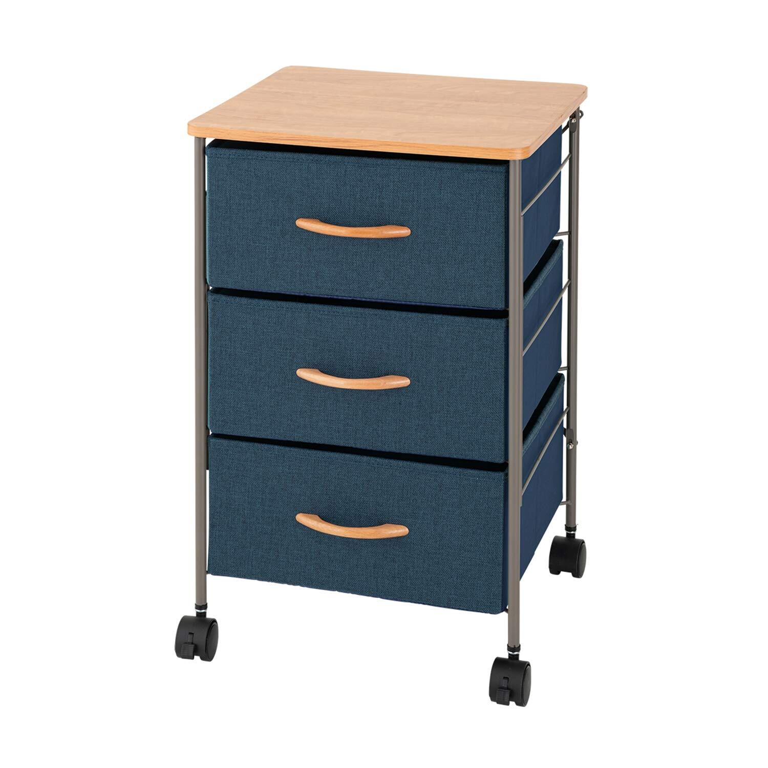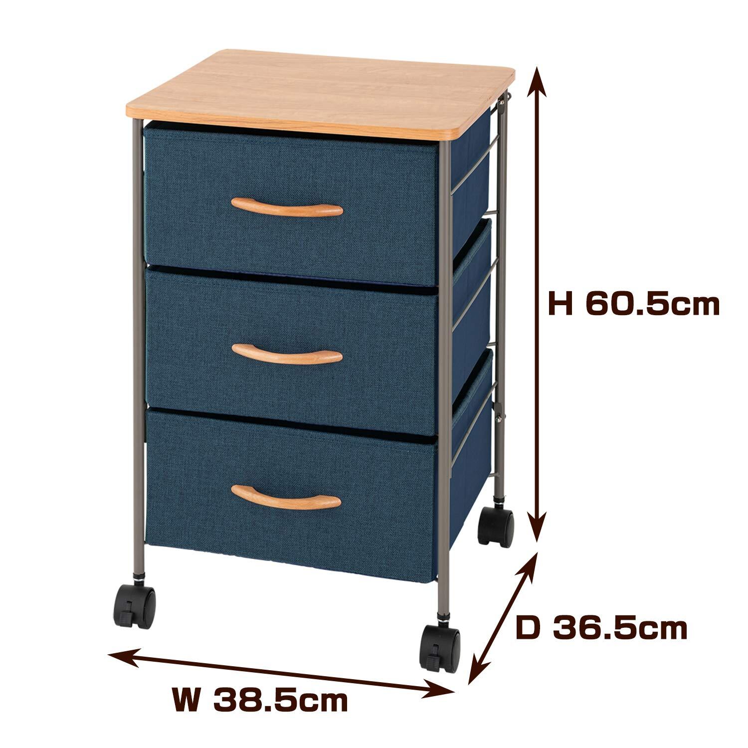 ドウシシャ 布製収納ボックス コンパクトチェスト 幅40 3段 青 軽くて便利 キャスター付き 木製天板 取っ手付き 幅38.5×奥行36.5×高さ60.5cm 通気性の良い不織布素材 深型ボックス ネイビー 子供部屋 ソファ横 CNC40-3NV