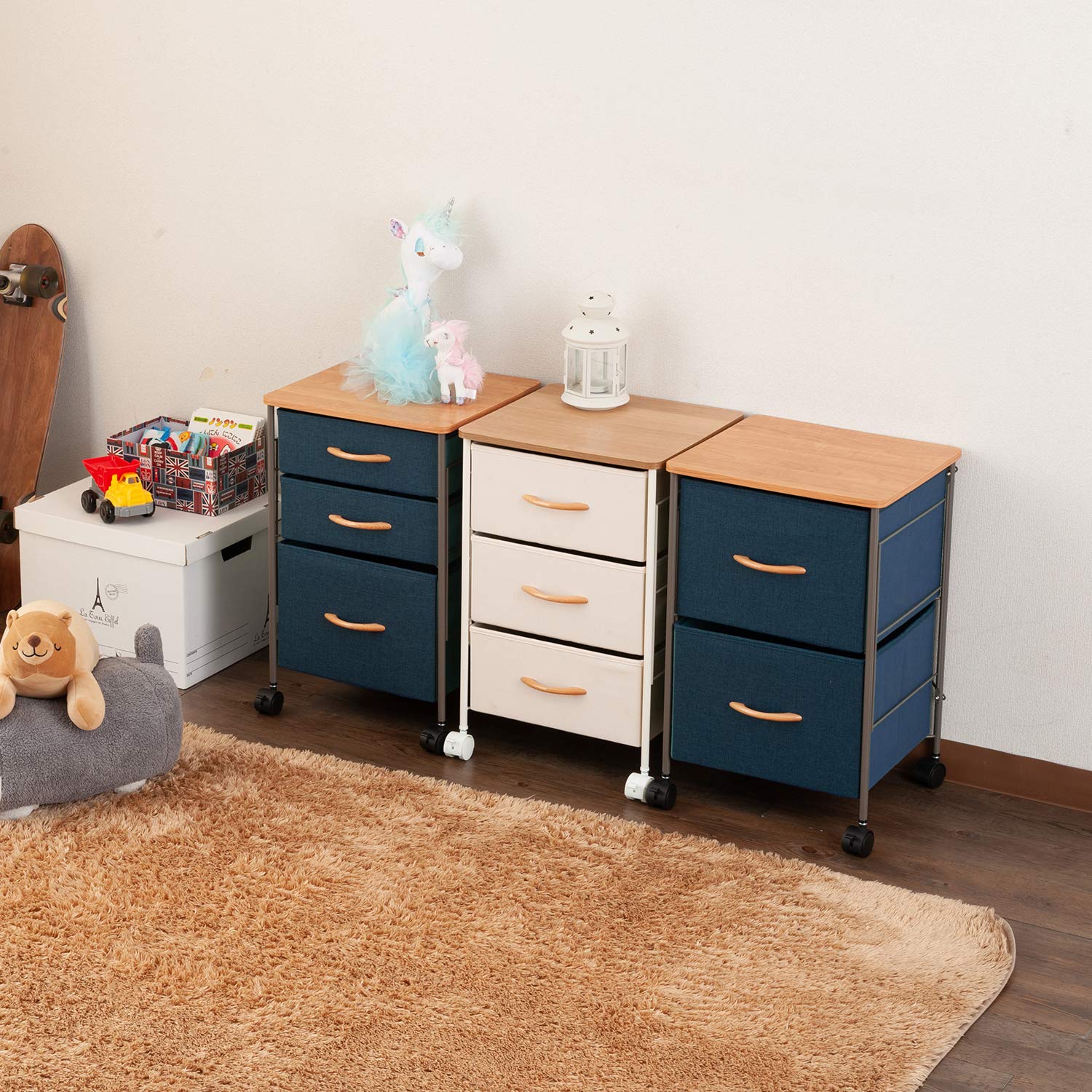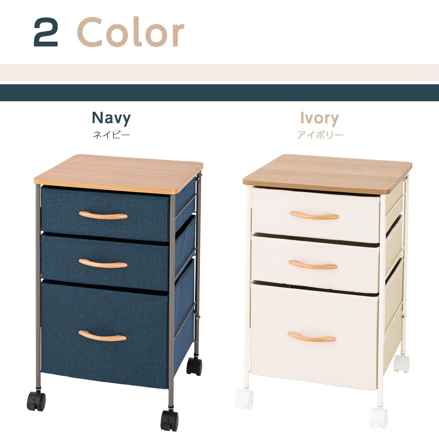 ドウシシャ 布製収納ボックス コンパクトチェスト 幅40 3段 白 軽くて便利 キャスター付き 木製天板 取っ手付き 幅38.5×奥行36.5×高さ60.5cm 通気性の良い不織布素材 深型ボックス アイボリー 子供部屋 ソファ横 CNC40-3FIV