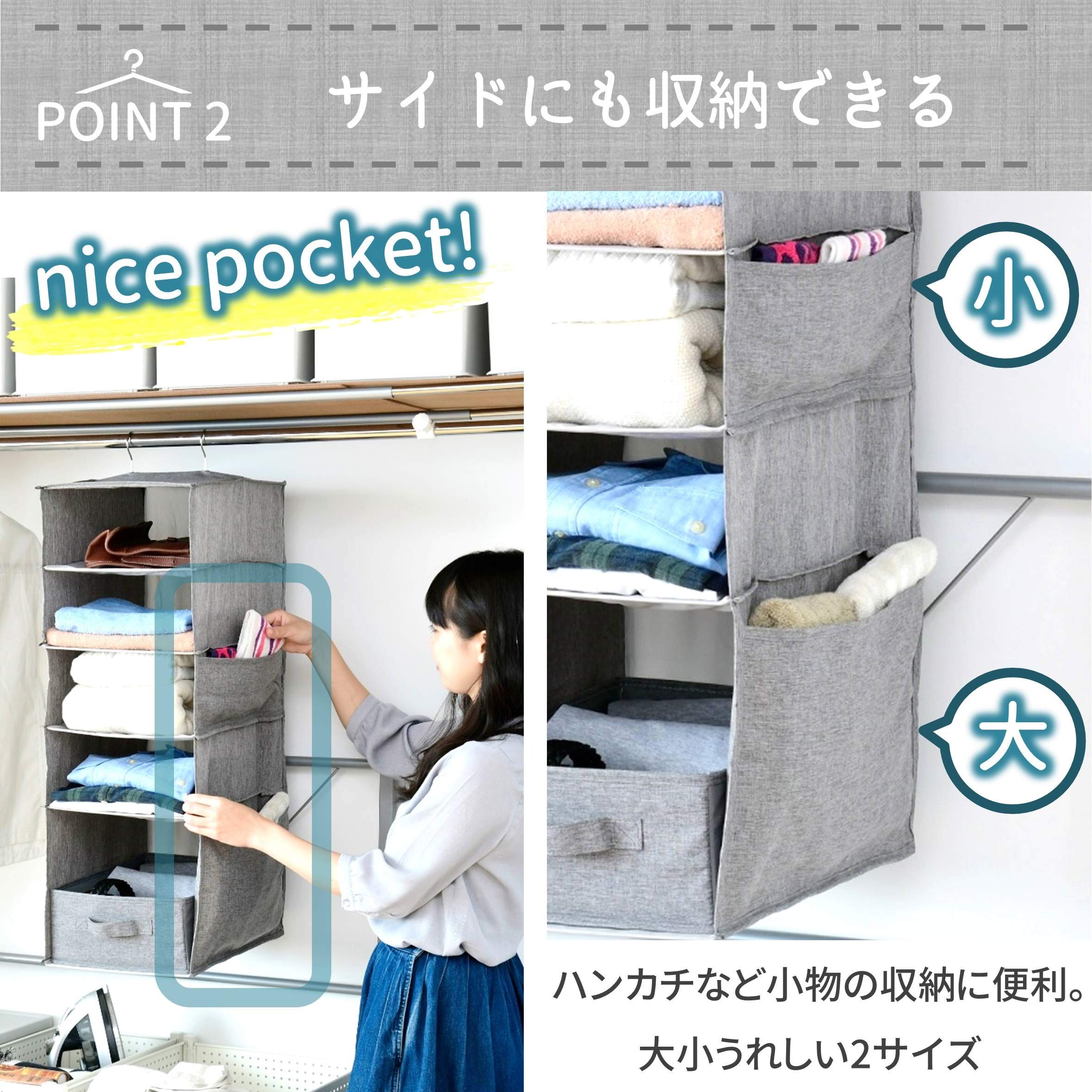 ●クローゼットのポールに簡単吊り下げ出来てクローゼットの中をスッキリ収納
