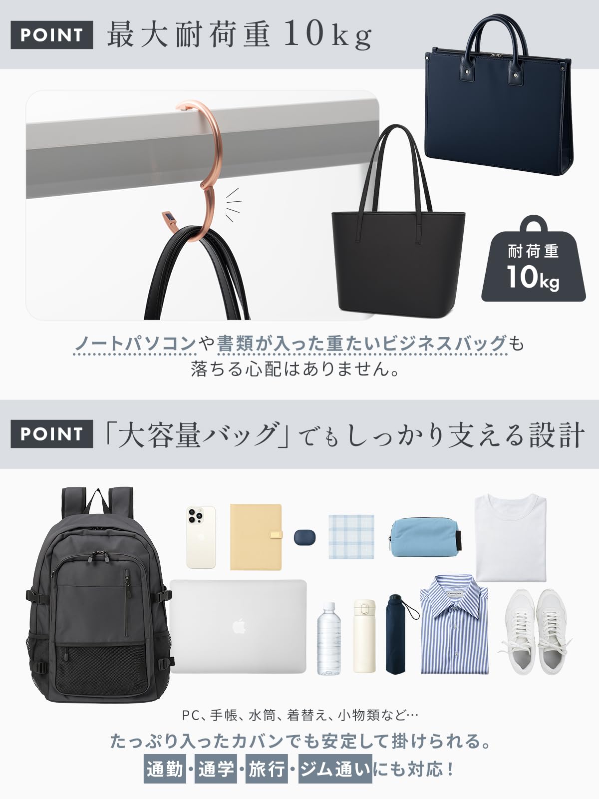 耐荷重10㎏!PCが入ったバッグもかけられます!!