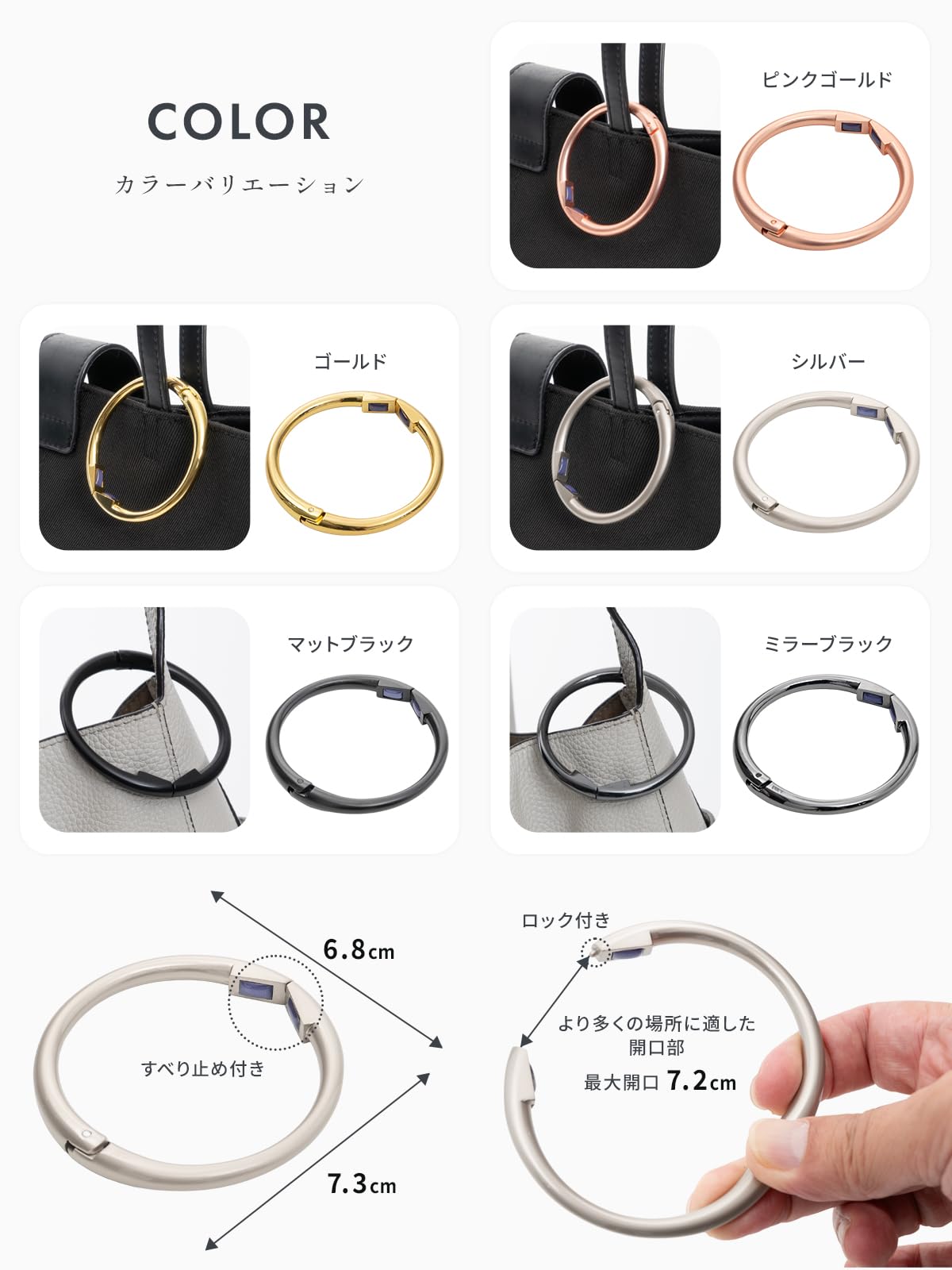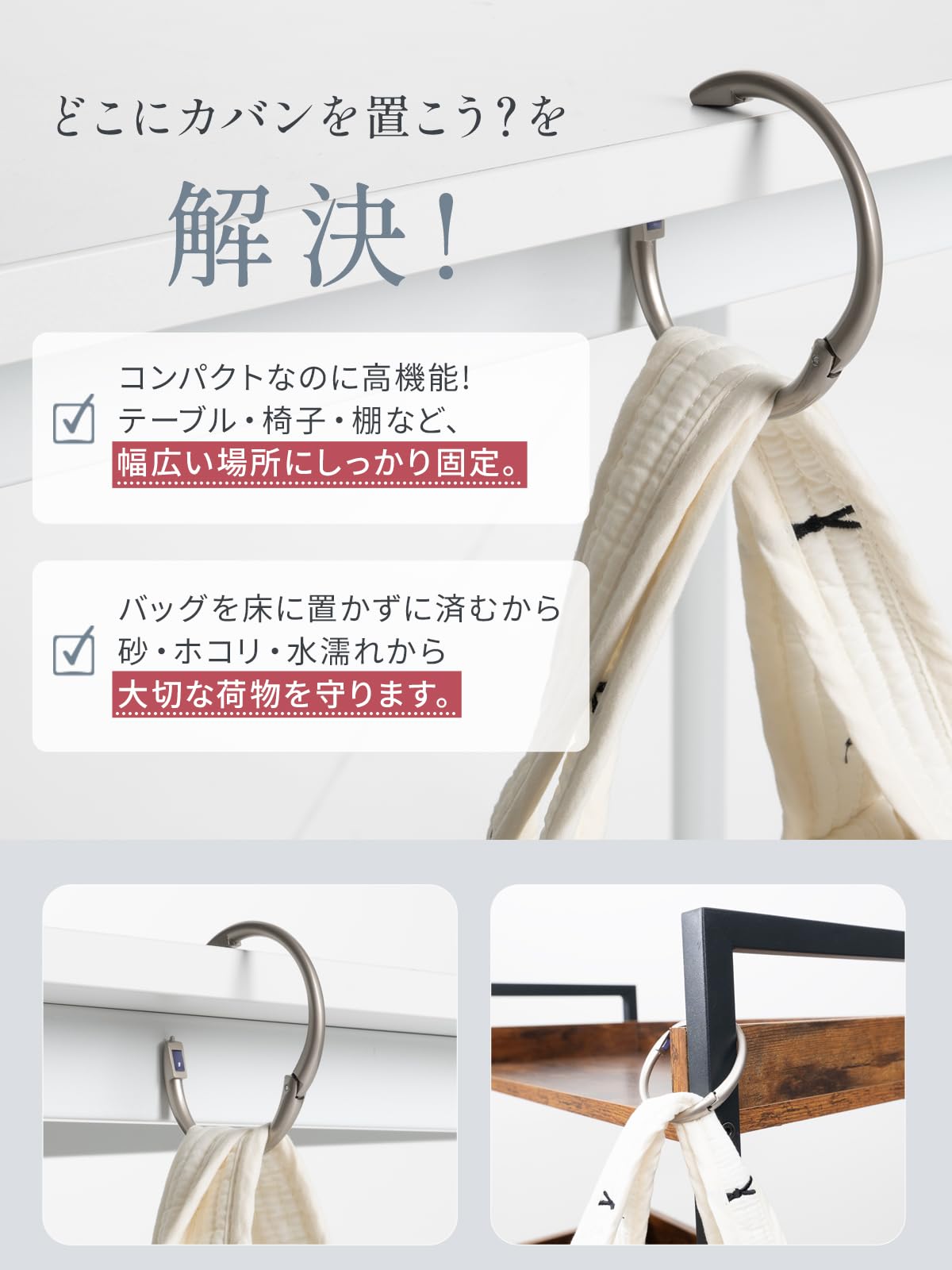 【整理収納アドバイザー監修】 バッグハンガー 「Ringy(リンギー)」すべり止め付きxイスにも設置可能 (シルバー, ワンサイズ)