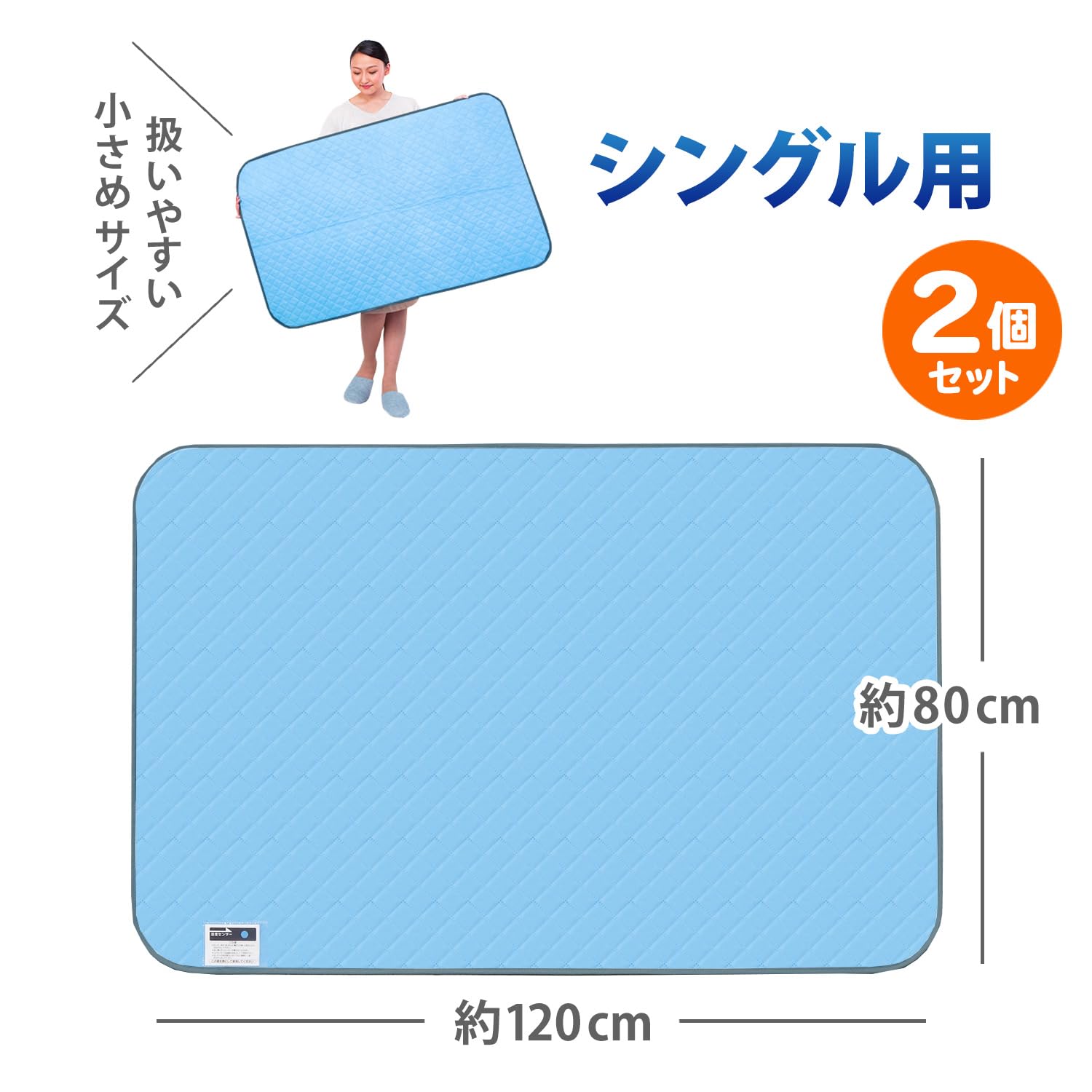 【商品仕様】:サイズ/約80×120cm、カラー/ライトブルー、内容/2枚、適応サイズ/シングルサイズの敷き布団・ベッド、材質/[不織布]ポリプロピレン [中わた]ポリエステル60%・合成繊維(アクリレート系)40% [透明窓]ポリエチレン