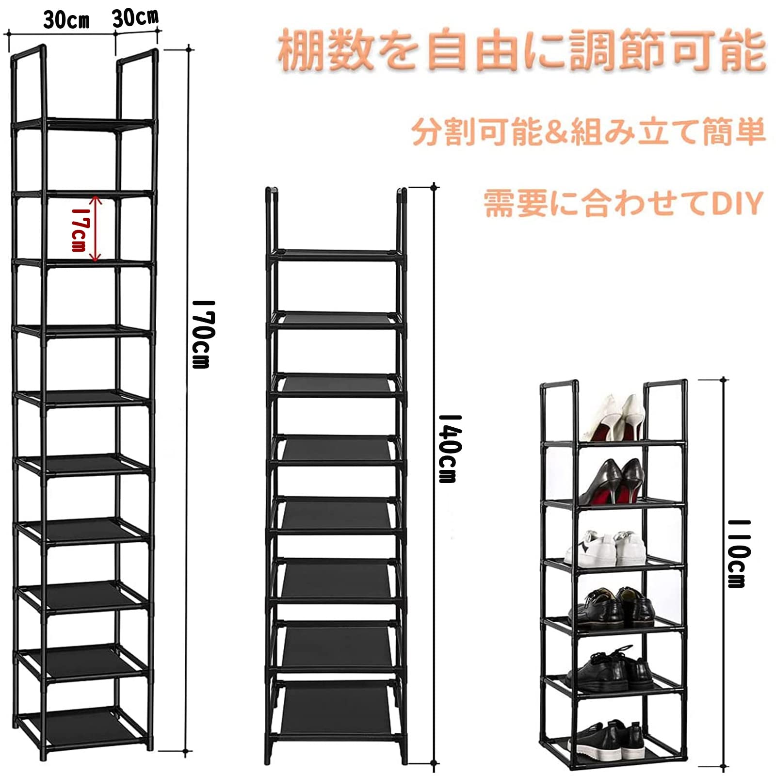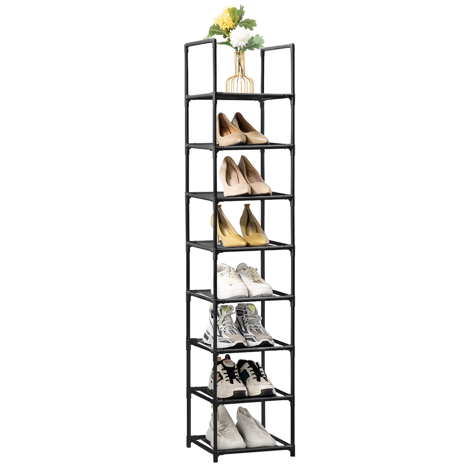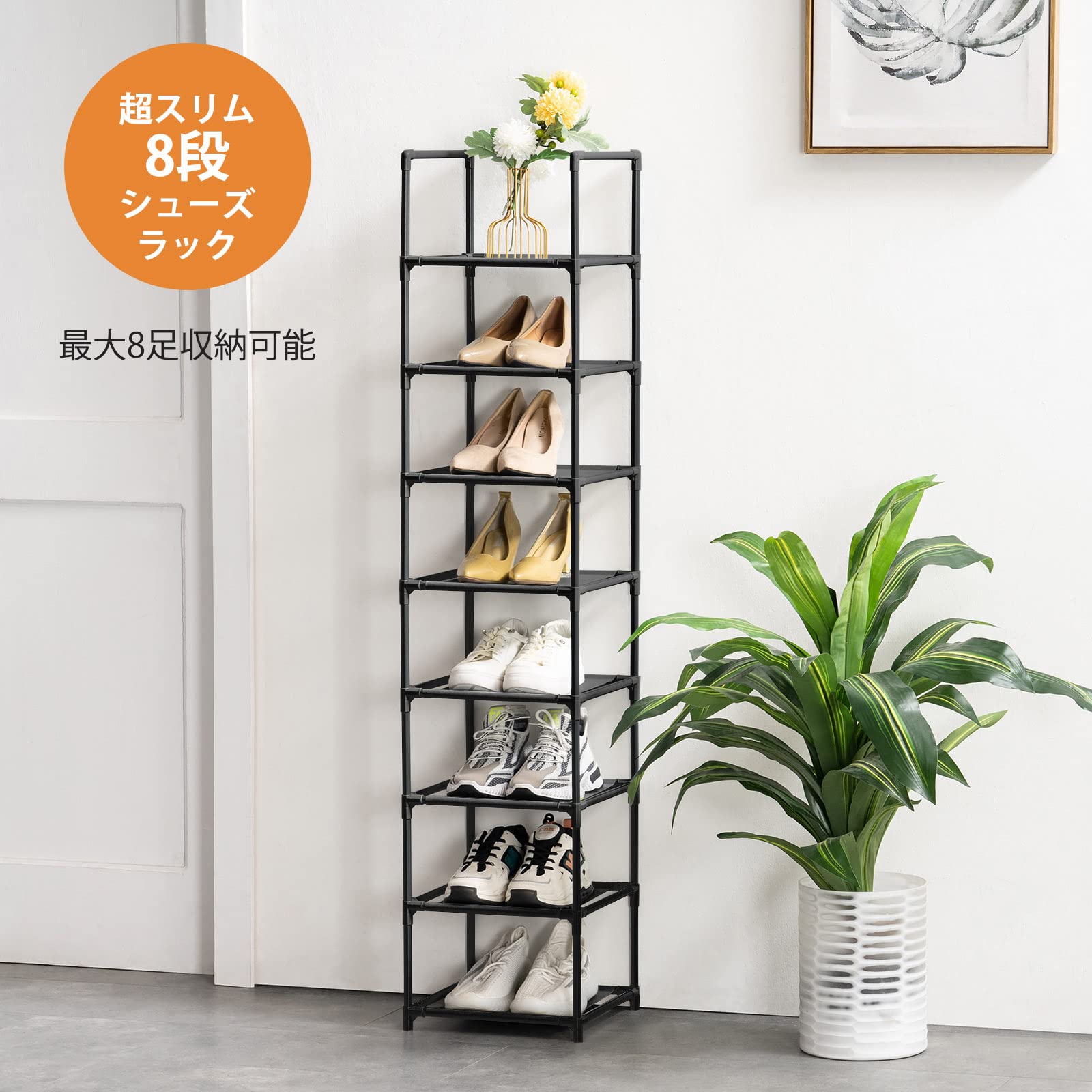 YOUDENOVA シューズラック8段 靴収納 分割可 シューズラックスリム 省スペース 組み立て式 8足 不織布 玄関に靴を効率収納 (ブラック、8段)