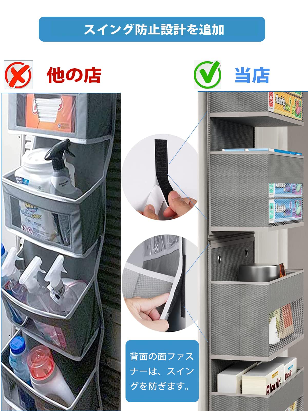 【スイング防止&耐荷重16kg】他のウォールポケットとは異なり、当店の壁掛け収納は、各サイドポケットの間に補強ステッチを施し、傾きを防止するために強化されたサイド段ボールを内蔵しています。さらに、底の厚紙は強く補強されており、最大16kgまで荷物を入れても変形することなく固定できます。また、ドアを開閉しても動いたり揺れたりしません。