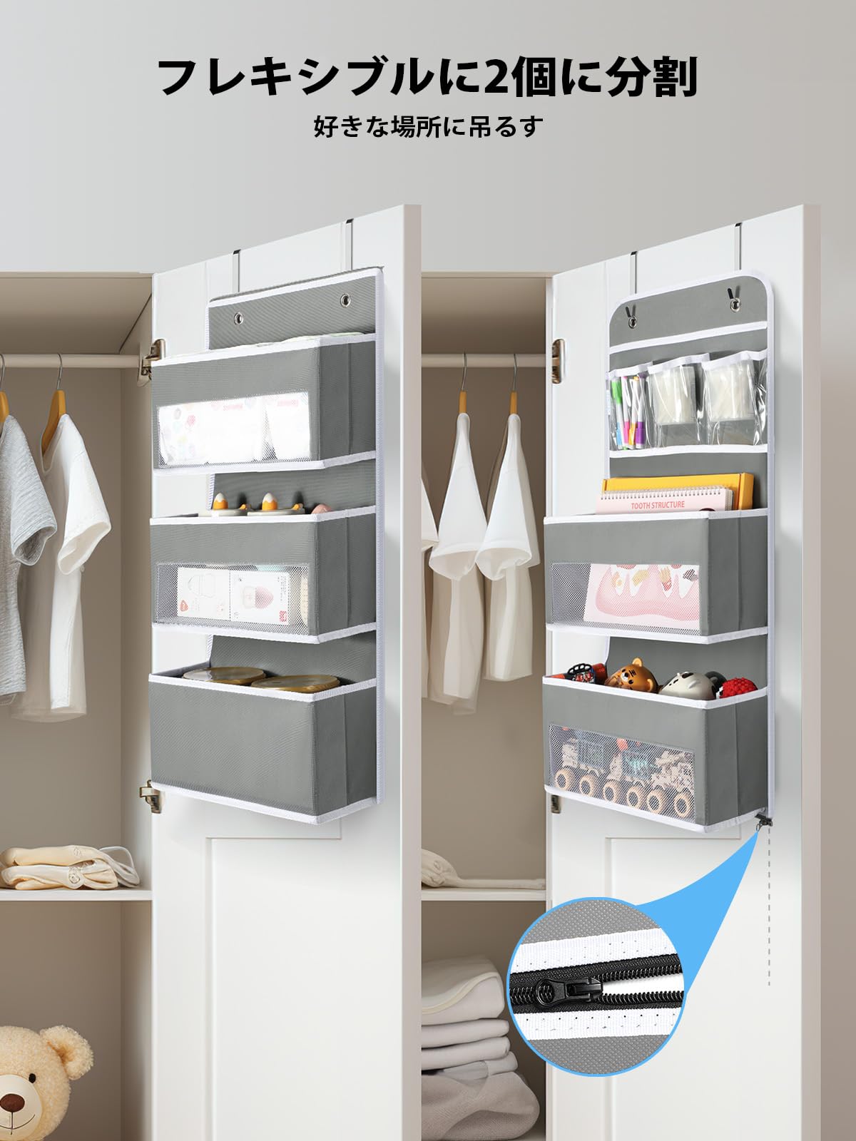 【分割可能な壁掛け収納】6段のウォールポケットとして使用して、ドアの全長にわたって1か所に専用のストレージを配置したり、3段のウォールポケットを2つに分割して、小さなクローゼット、バスルーム、ランドリールーム、ベッドルーム、玄関、またはスペースが限られている場所で柔軟に使用したりできます。