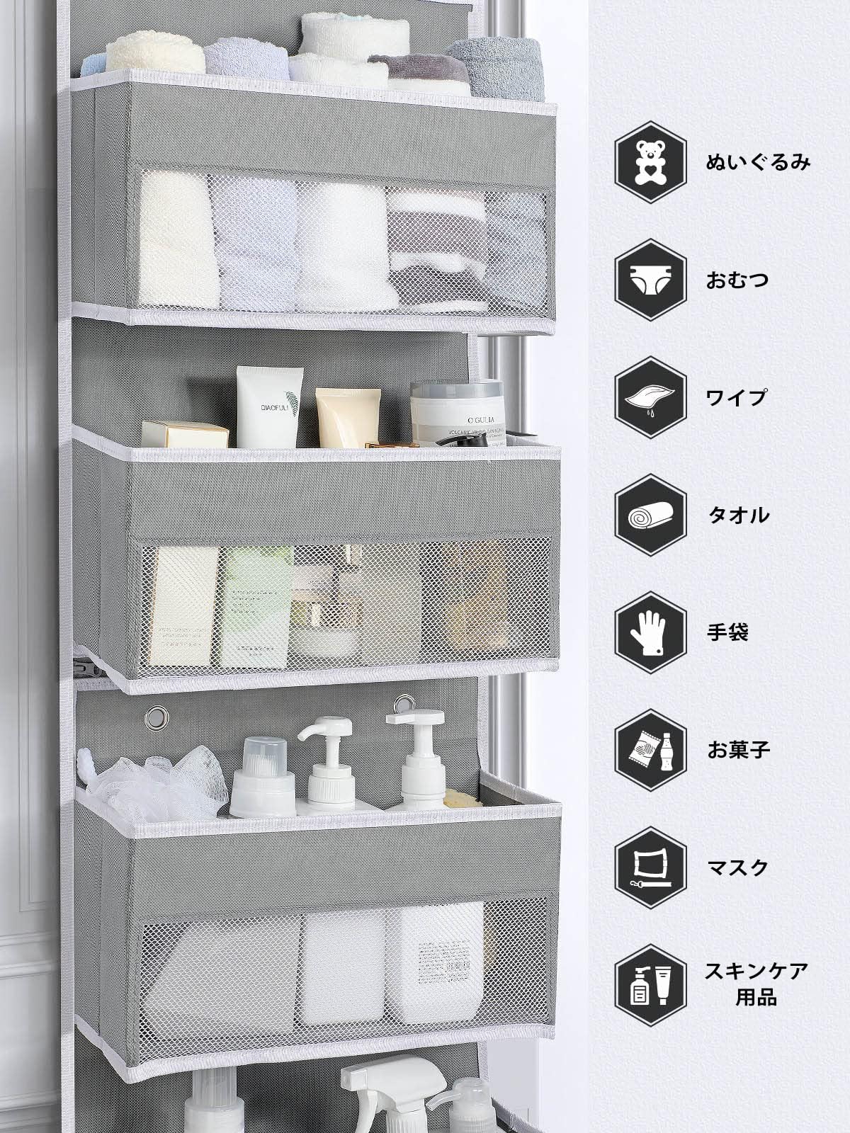 ウォールポケット 壁掛け収納 6段 分割可能 ドア掛け 収納ポケット 壁掛け 吊り下げ収納ポケット 大容量 不織布 頑丈 メッシュ窓 おむつ タオル 化粧品 おもちゃ リモコン 収納 弾性フック4個付き (グレー)