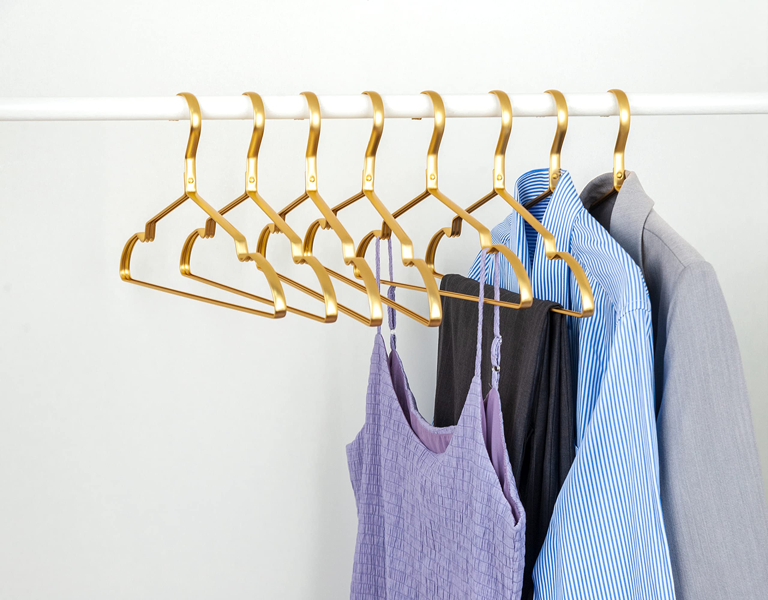 Amber Home 超軽いアルミハンガー アルミニウム製 ゴールドハンガー クローゼット 収納 衣類 洋服 スーツ Tシャツ ジャケット コート ドレス ボトム エレガント 頑丈 耐用 カビにくい 曲がらない 滑らない 型崩れ防止