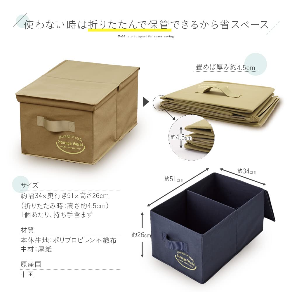 【商品仕様】商品サイズ/(約)34×51×26cm(畳めば厚み約4.5cm)、耐荷重/(約)10㎏(1個あたり)※中身約10kgまで、材質・成分/本体生地:ポリプロピレン不織布、中材:厚紙
