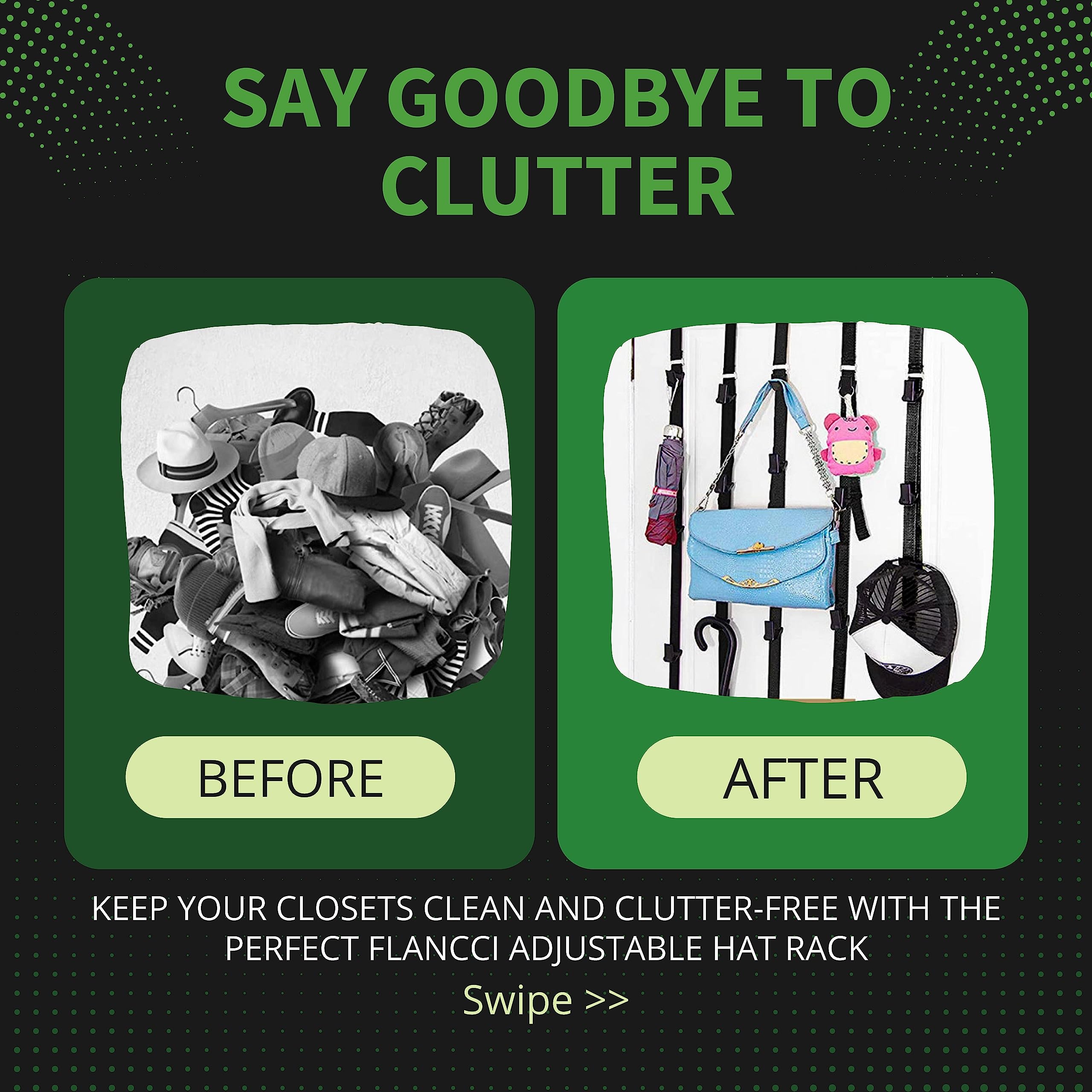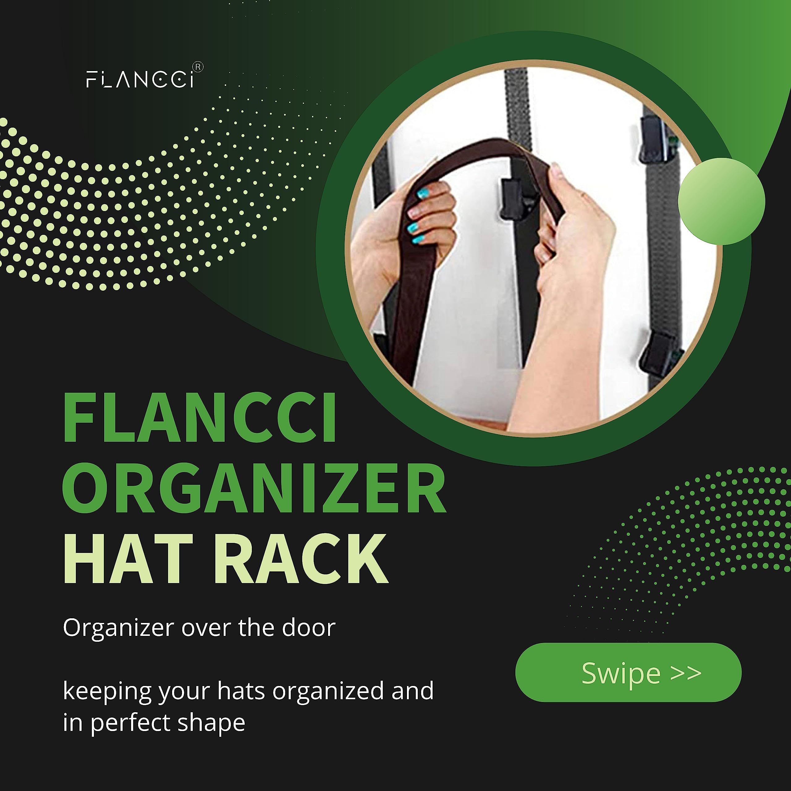 FLANCCI ドアの上の帽子ラックオーガナイザー、野球帽ホルダー、クローゼットのドアラック用帽子ハンガー、調節可能な帽子収納ラック、ストラップ2本、調節可能な吊り下げフックで最大18個の帽子を収納