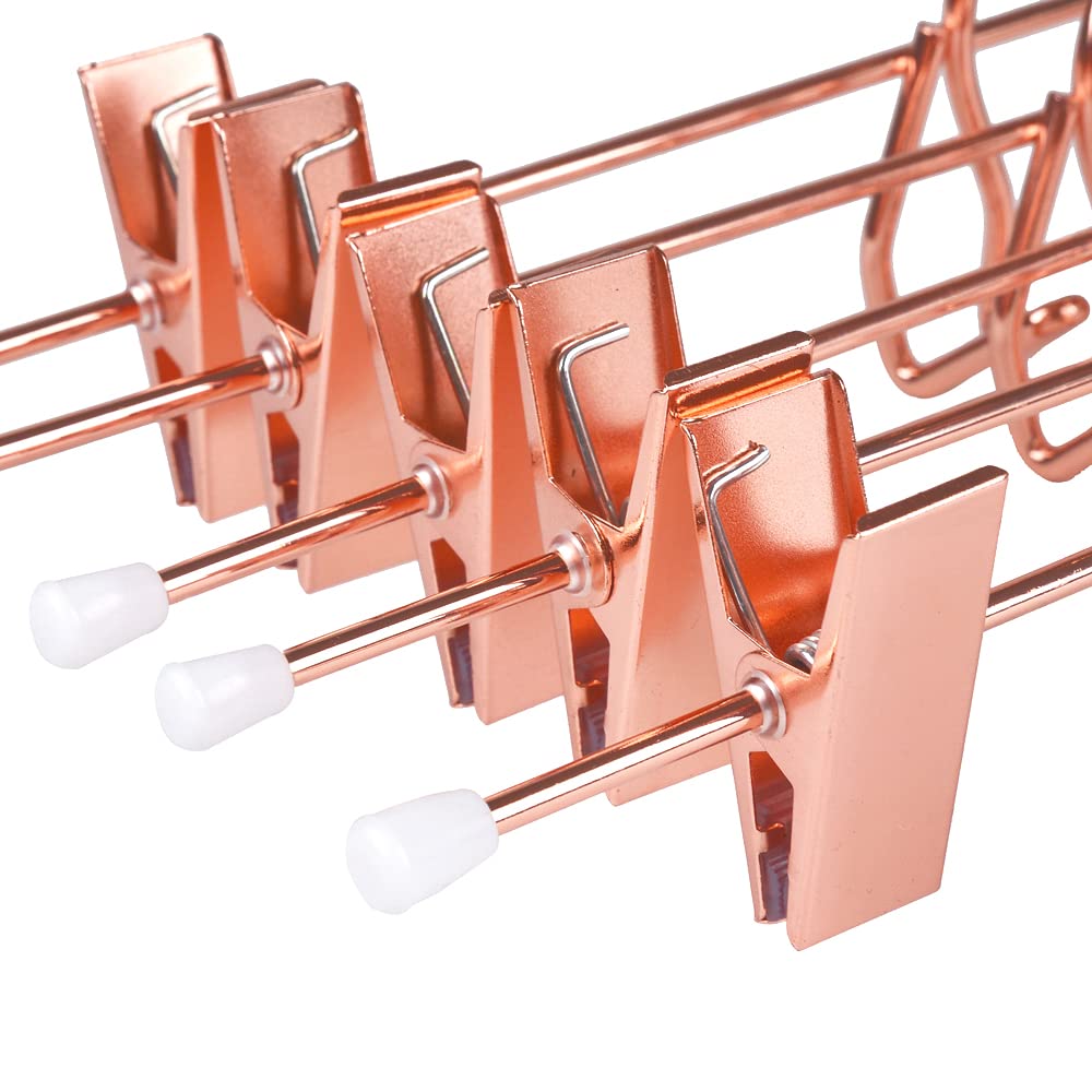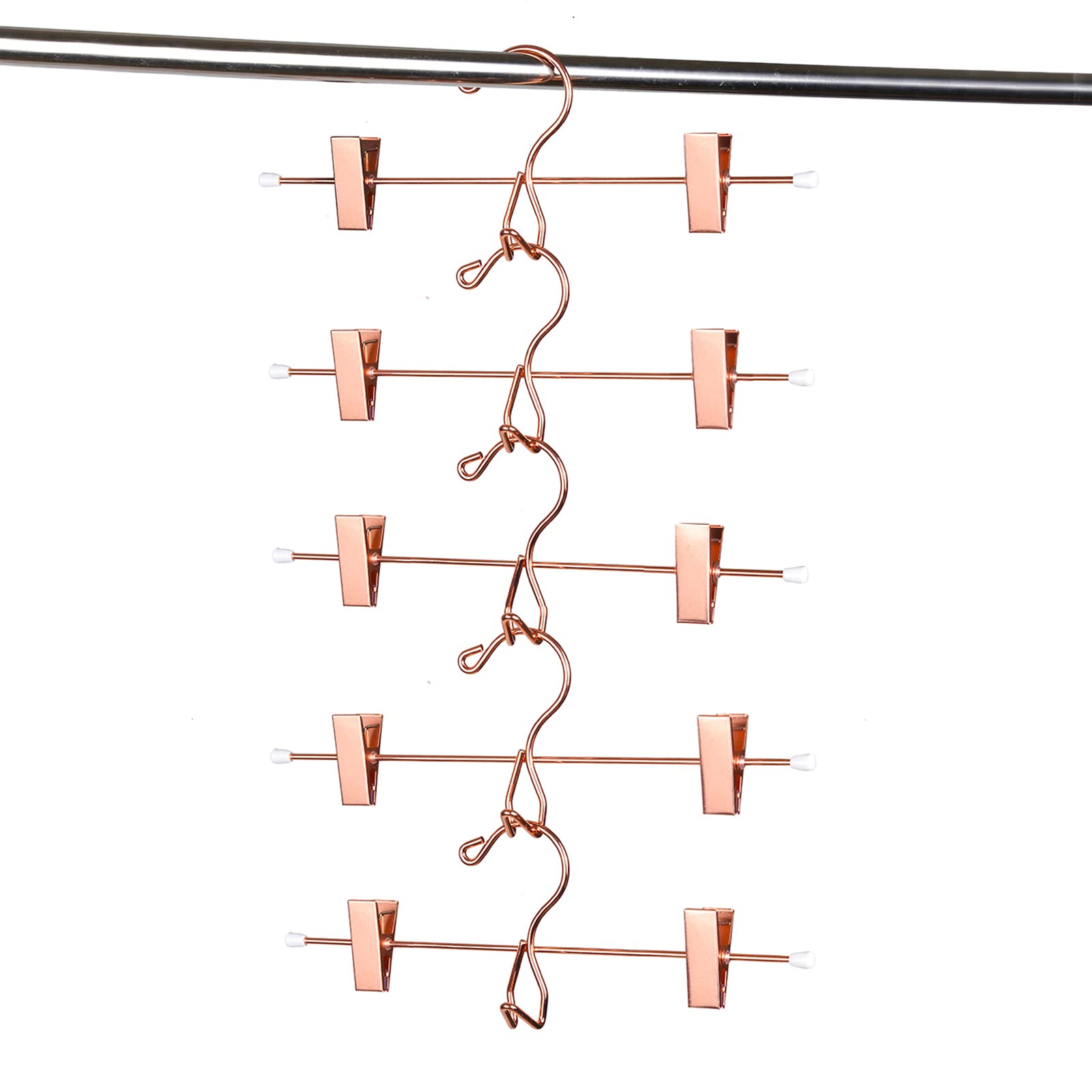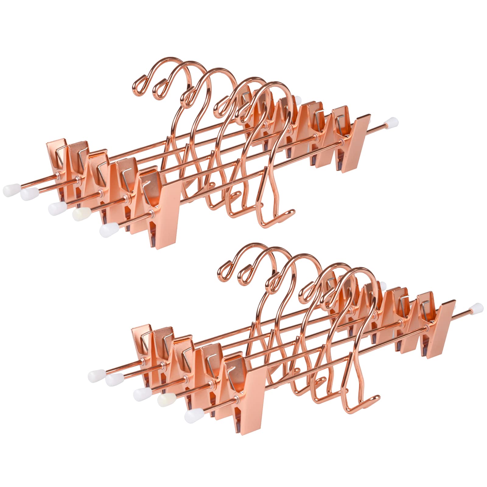 Amber Home ローズゴールド ズボンハンガー 12本組 連結フック付き スカート 省スペース スチール金属ハンガー 収納便利 クローゼット収納 滑り落ちない 調節可能 強力クリップ シワ防止 錆びにくい クロム 多機能ハンガー 省スペースハンガー コンパクト