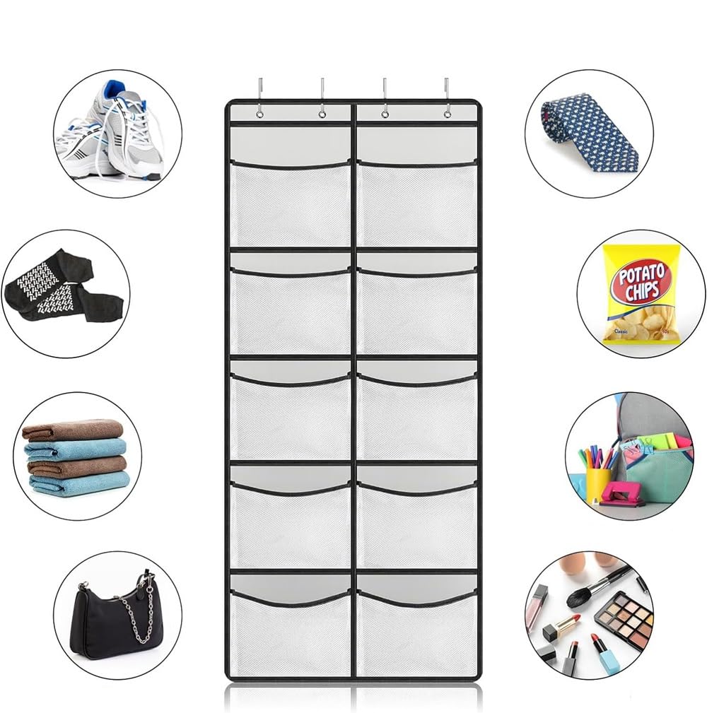 ウォールポケット ドア掛け 吊り下げ収納 10個ポケット 壁掛け式 メッシュ袋 吊り下げ収納ポケット 頑丈 大容量 タオル 化粧品 バック収納 小物収納 多機能 吊り下げハンガー