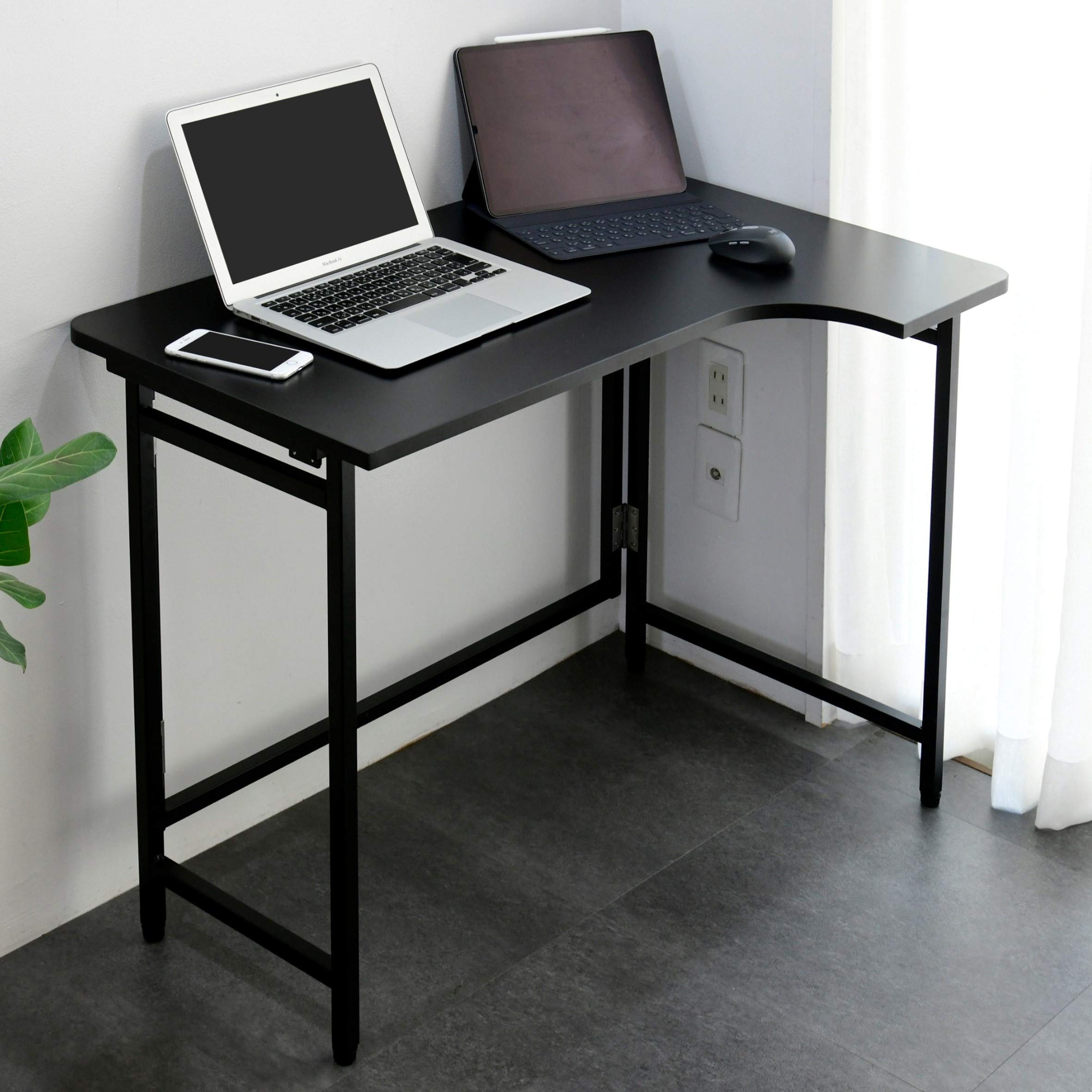 【在庫処分】山善(YAMAZEN) デスク (L字デスク) 折りたたみ 傷・汚れ・水分・熱に強い天板 なめらかな表面 角が丸い アジャスター付き 幅90×奥行60×高さ70.5cm 完成品 ブラック/ブラック RPSTC9060HBKBK4 テレワーク