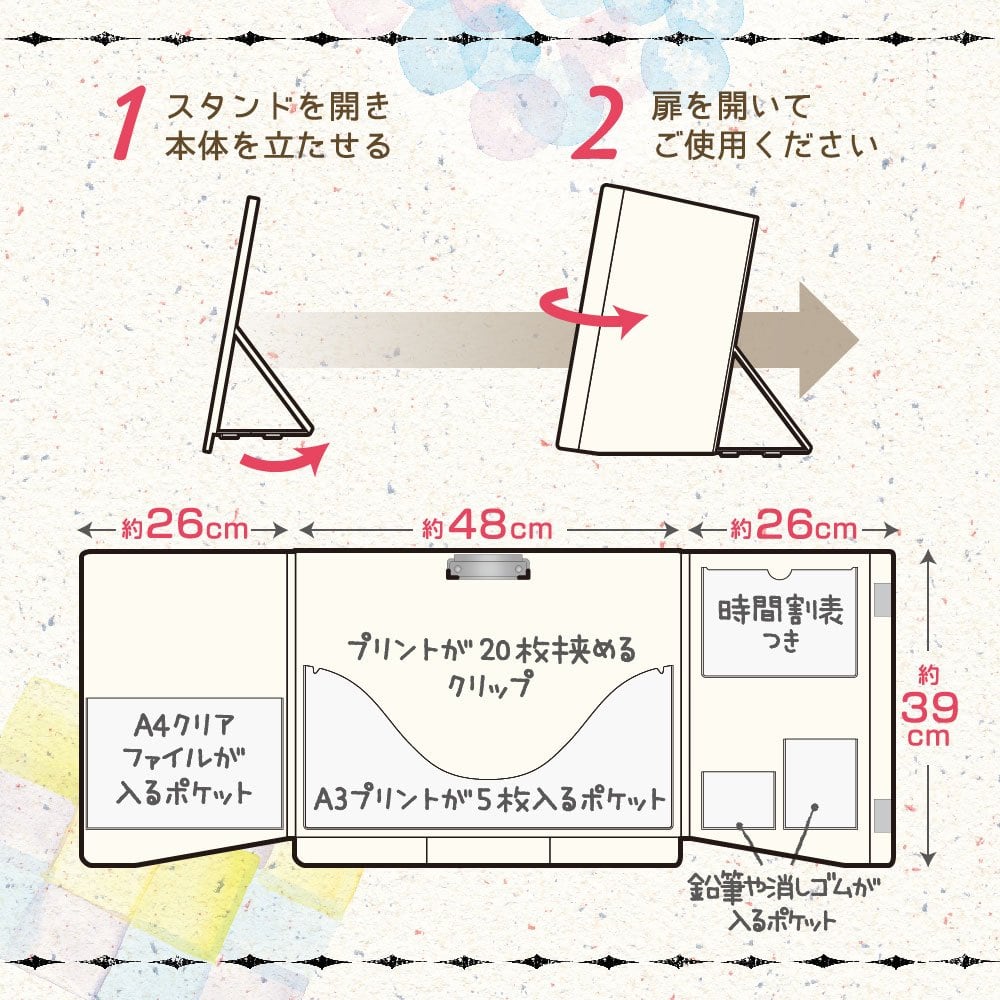 気が散る原因をシャットアウトする卓上ブース。プリントをはさめるクリップやポケット、時間割表つき。