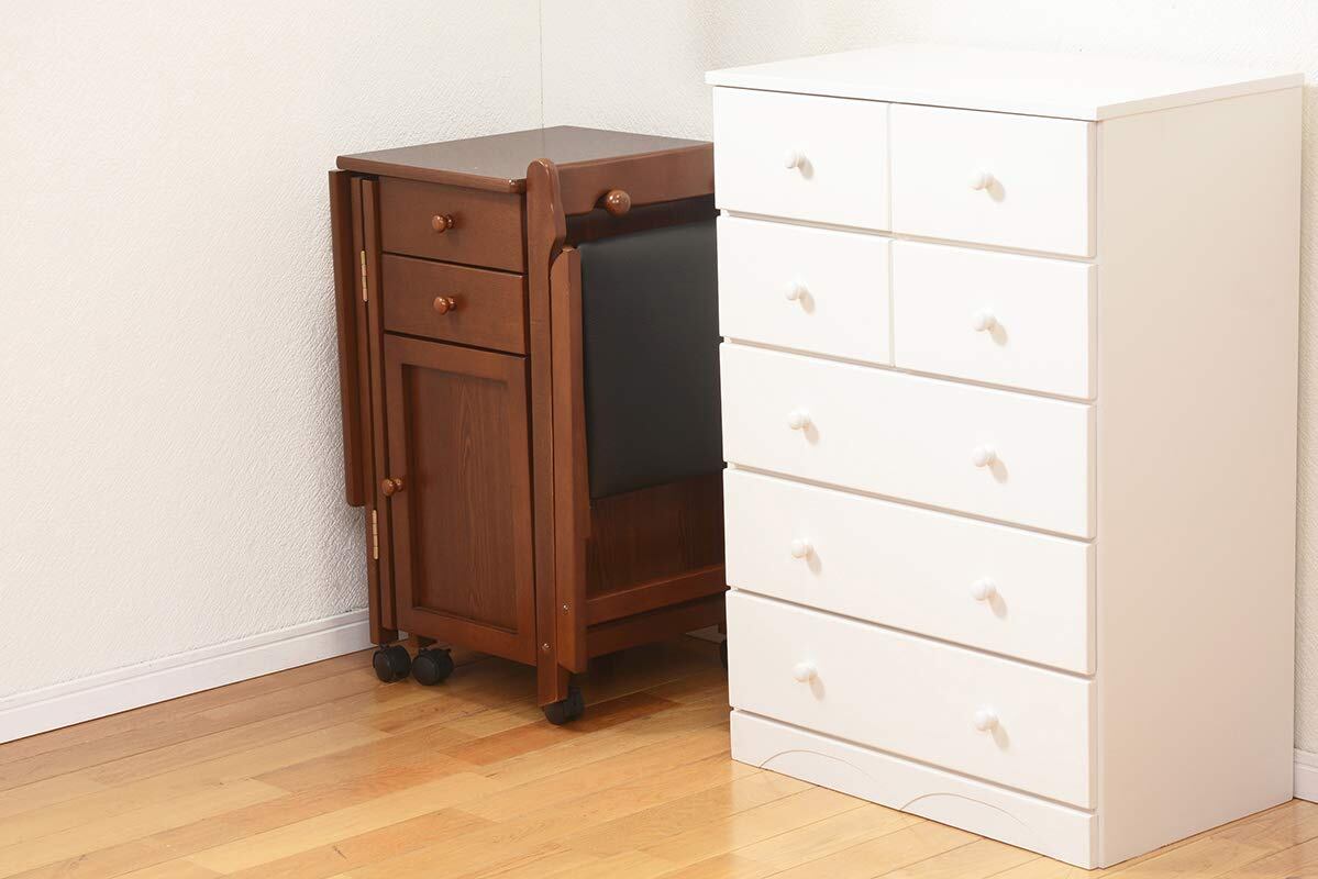 【別売りデスクとの組み合わせも】専用のサイドフックが付いたデスクと合わせれば、使わない時に省スペースで収納できます。