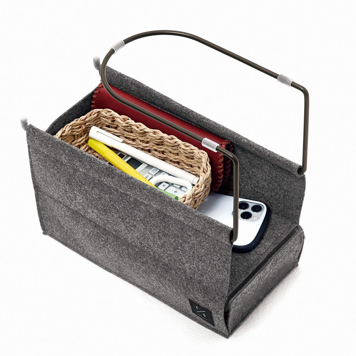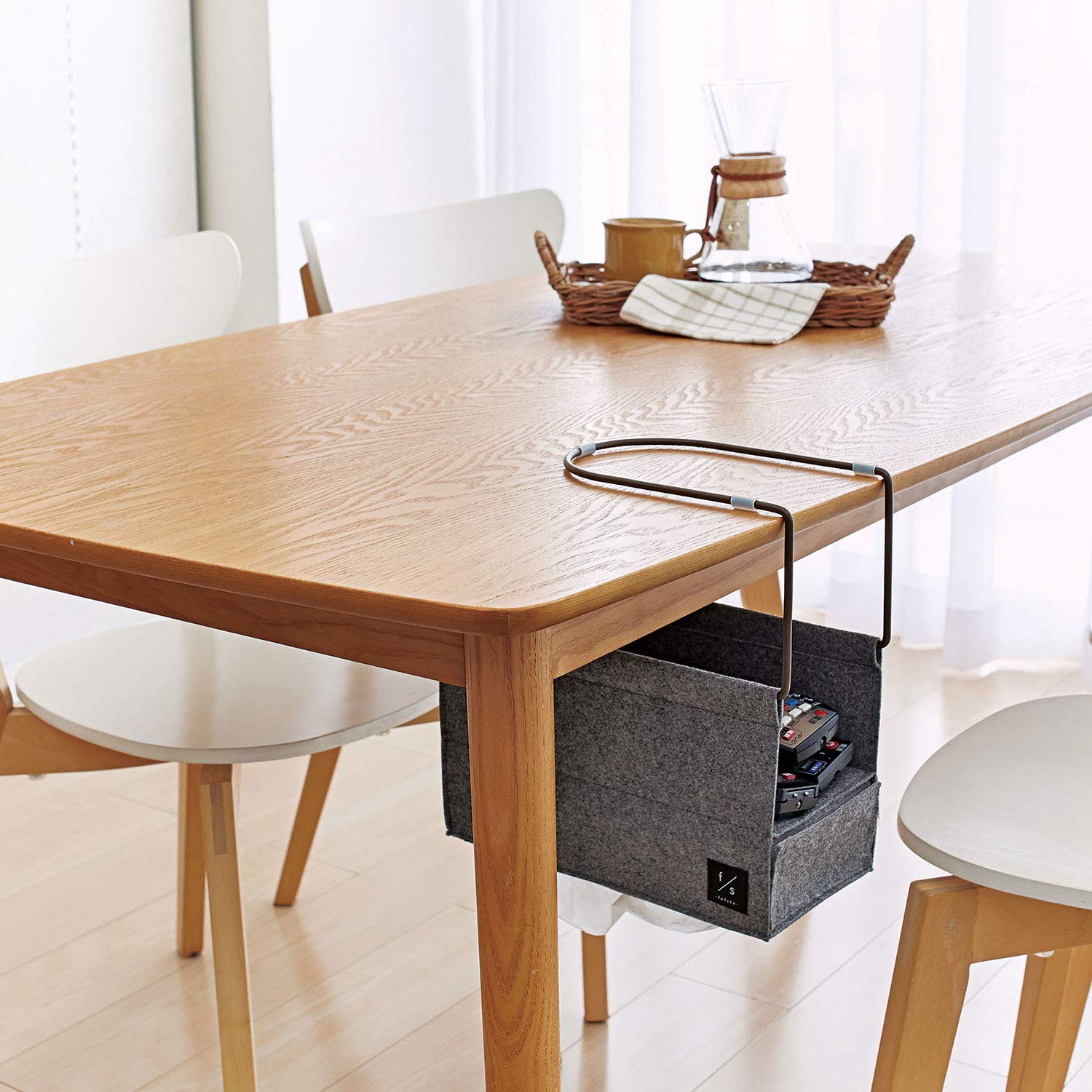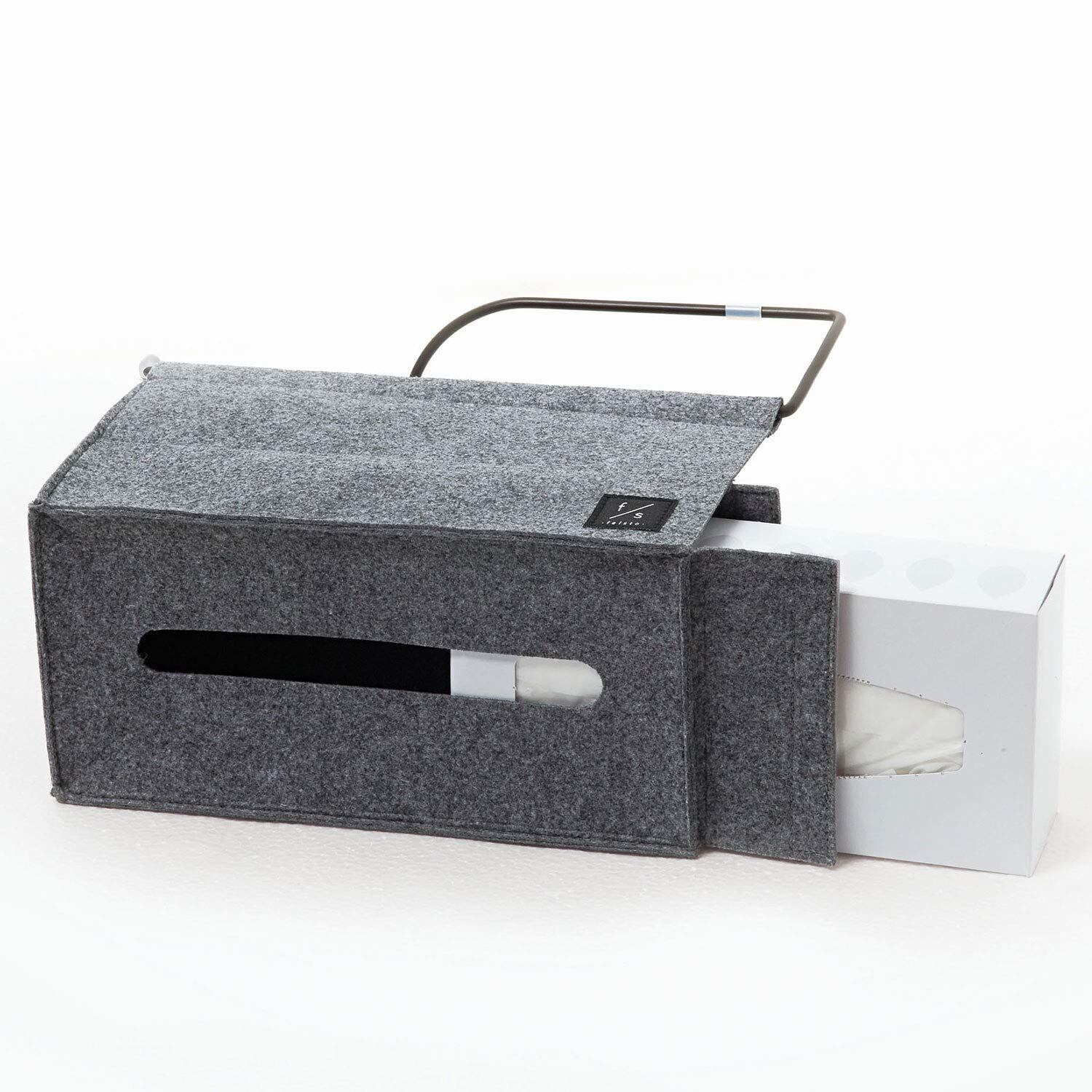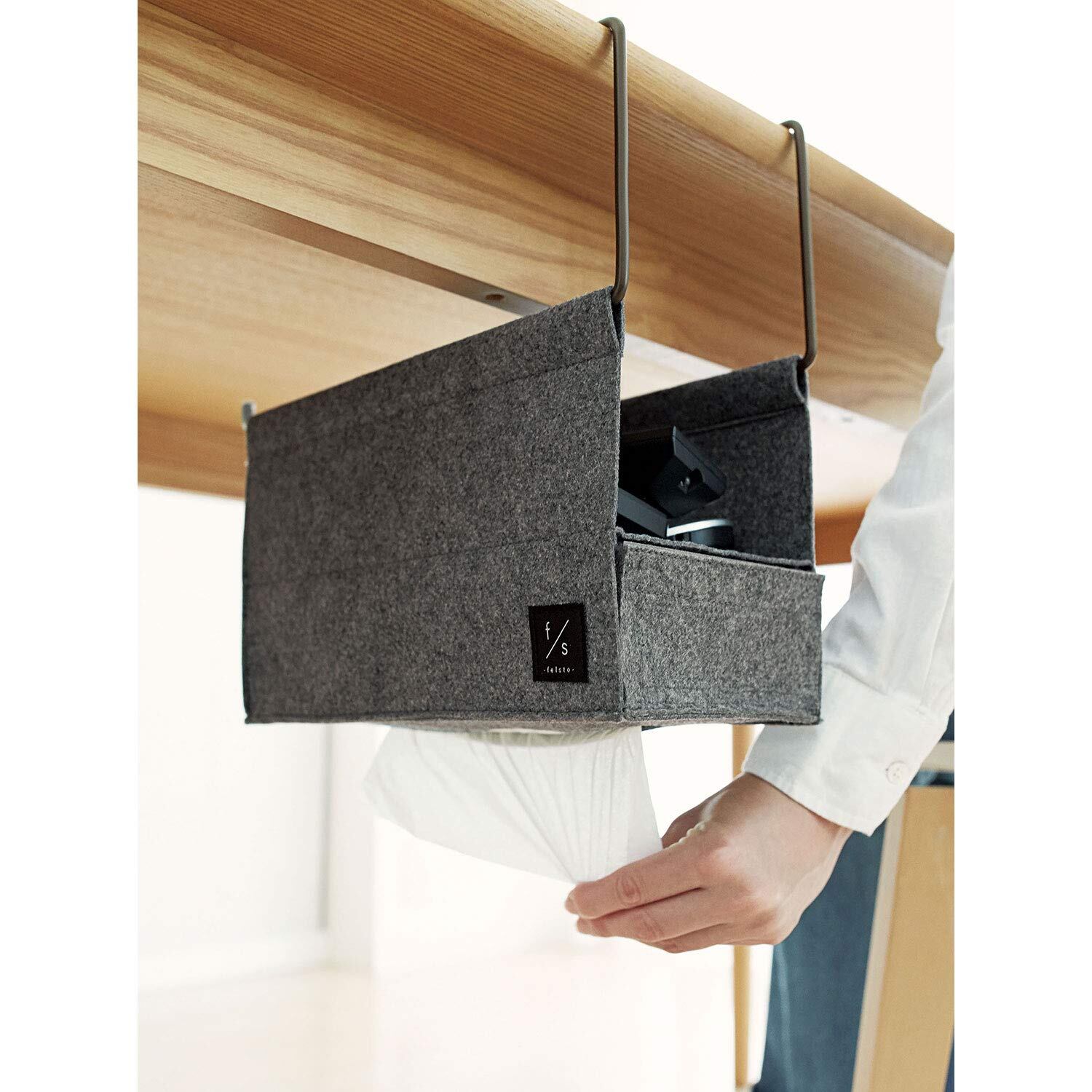 リモコンやティッシュを机の下に隠してスッキリ!定位置に収納できるからもう探さない!ティッシュは底から取り出せます。リビングになじむフェルト素材。