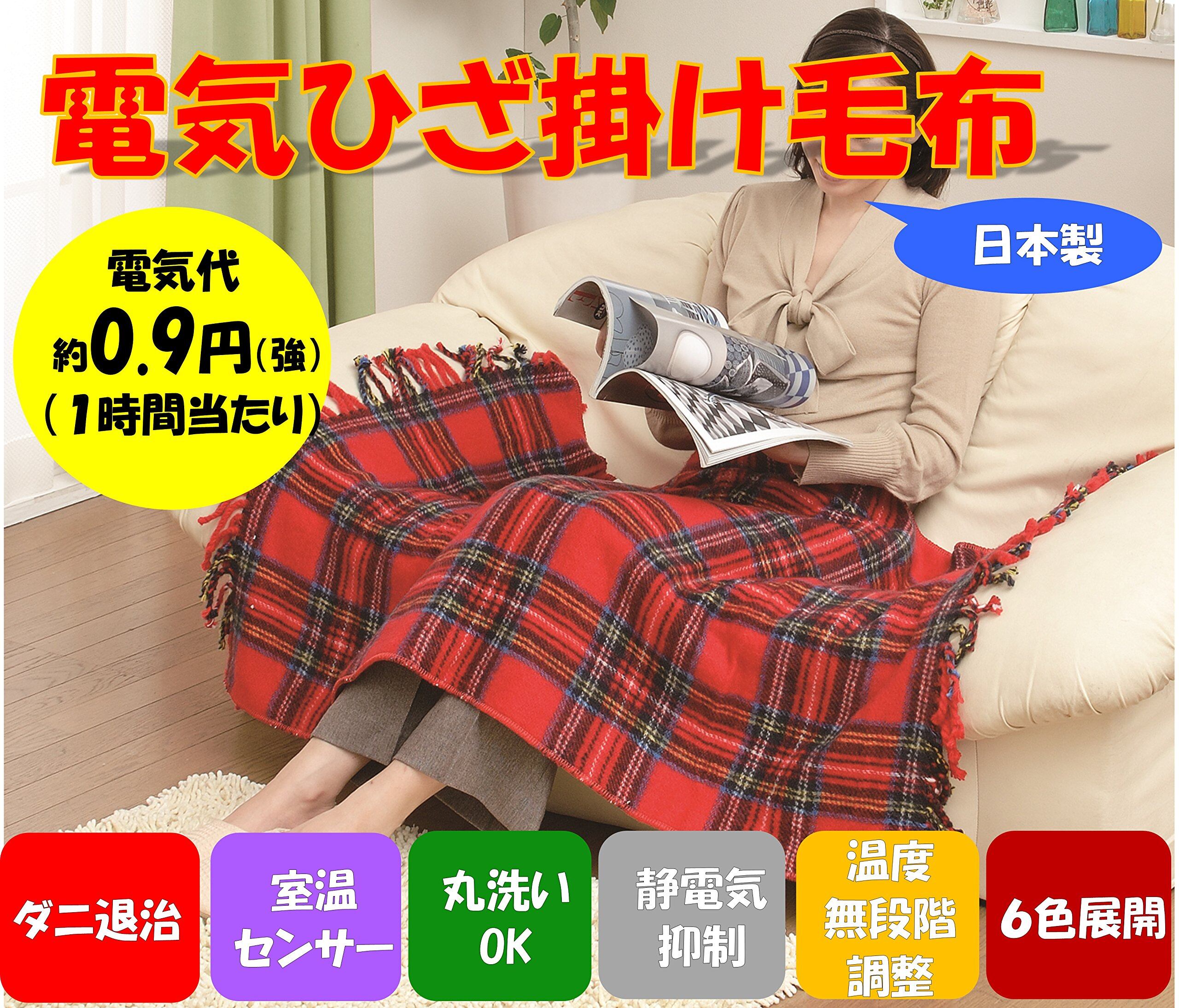 使い方いろいろ、マルチに使えるチェック柄の日本製電気ひざ掛け