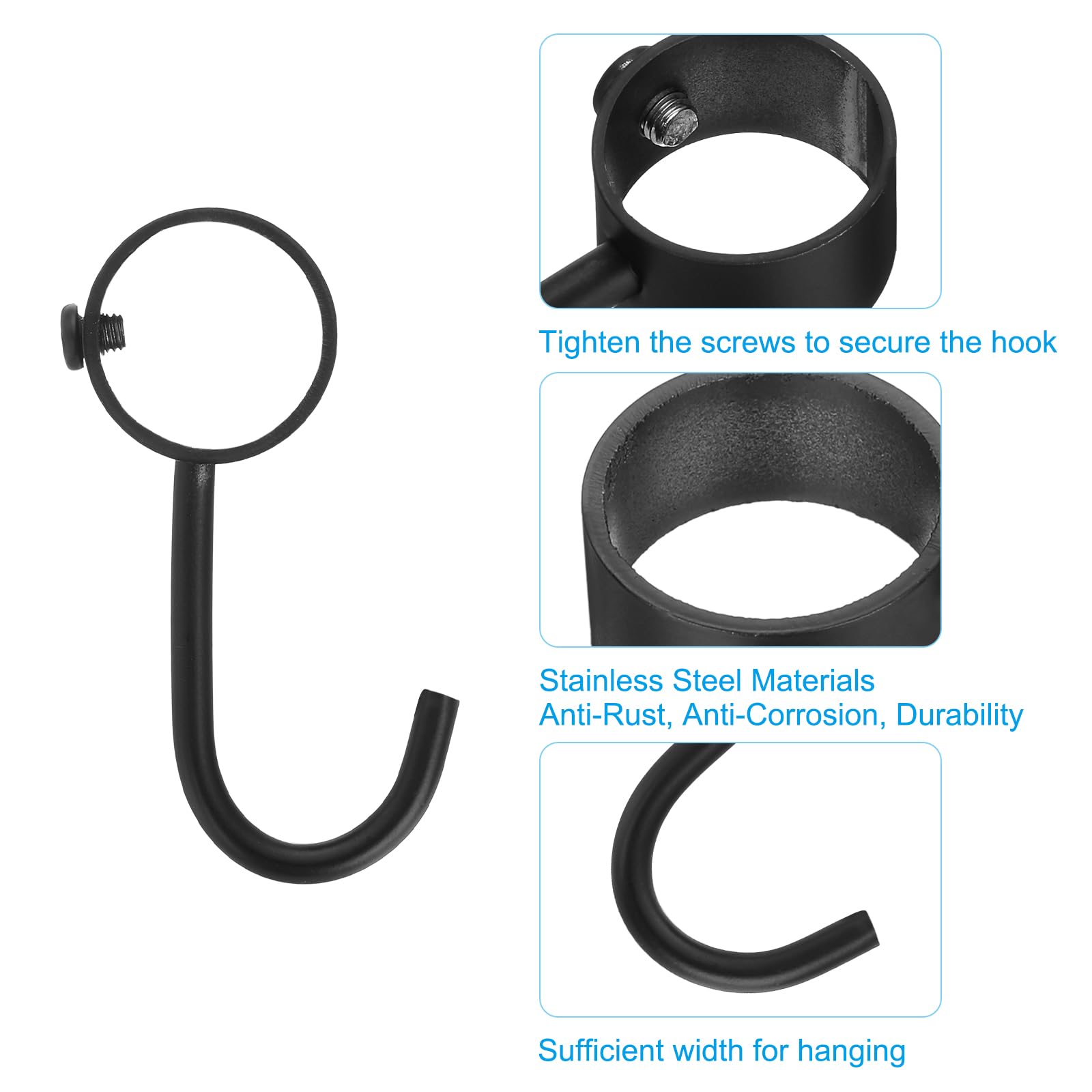 uxcell 6個セットのパイプロッドフック ステンレス製 内径25mm/0.98インチ 調節可能なロッドクローゼットフック コートフック ワードローブに吊るすポット用 黒
