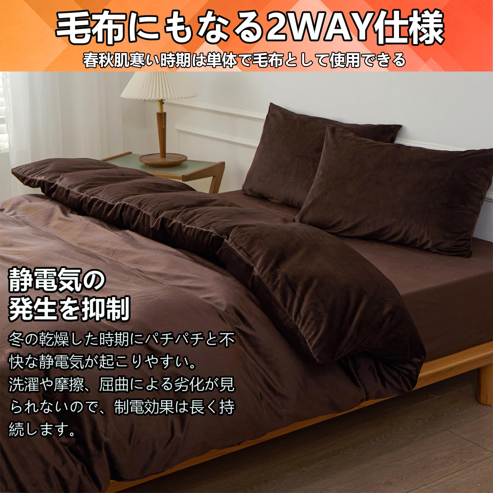 【数量限り】掛け布団カバー シングル あったか 秋冬用 極細マイクロファイバー 吸湿発熱 速乾 静電気防止 かけ布団カバー 毛布にもなる2WAY仕様 布団掛けカバー 掛けふとんカバー 静電気防止 抗菌防臭 8ヶ所紐付き (掛け布団カバーシングル:150x210cm ブラウン)