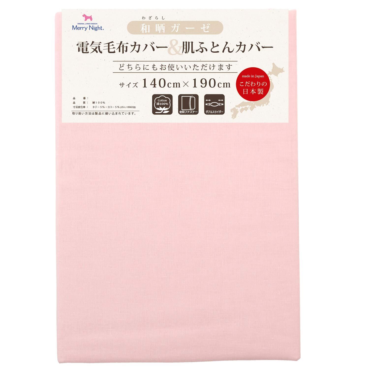 メリーナイト 毛布カバー 和晒ガーゼ 電気毛布カバー&肌布団カバー ピンク シングル 約140×190cm ダブルスライダー両開き 日本製 綿100% 吸水性 通気性 軽量 オールシーズン ふんわりやさしい肌触り 洗える DM1421-16