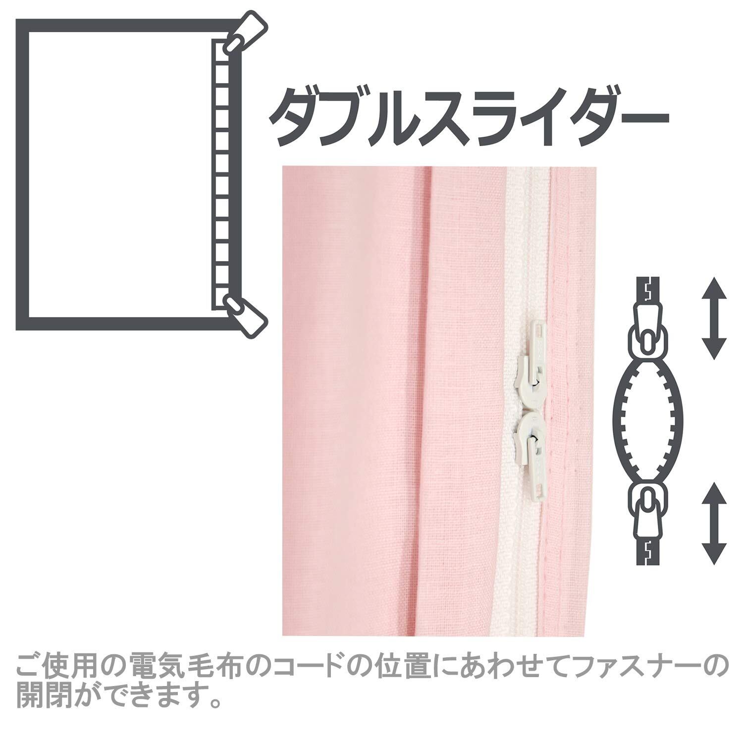 綿100%ガーゼ生地を使用した電気毛布専用カバー。使用している電気毛布コードに位置合わせて開閉できるダブルスライダー(両開き)のファスナーです。家庭で洗濯し難い電気毛布もカバーをすることで気になる汗や汚れを防ぎ衛生的に使用できます。