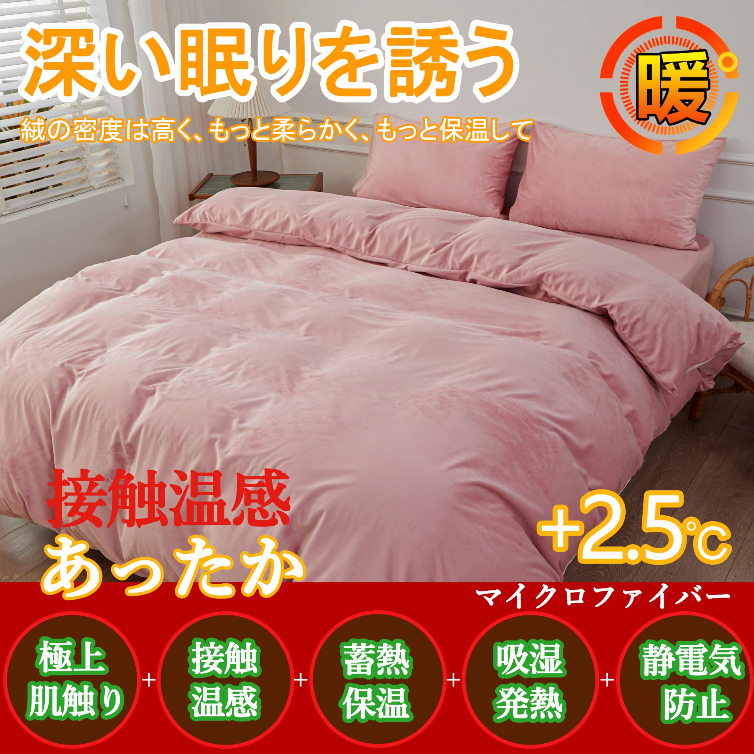 【あったか接触温感・蓄熱保温機能】肌ざわりのひみつ極細マイクロファイバーを高密度で編み上げた生地のカバーは布団に入った瞬間ヒャッと感がなく、入った瞬間からすぐに暖かさを感じる事できます。ほどよく暖かい空気を含んでくれますので、保温性が高くなっています。ぬくぬくの暖かさで、寒い時期には欠かせないアイテムです。