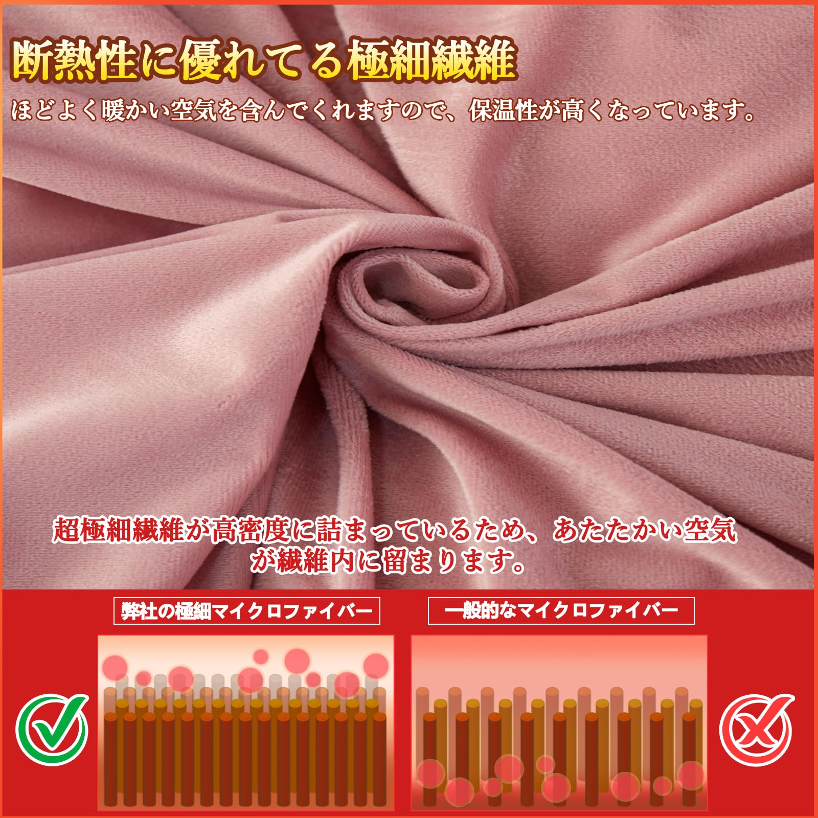 【吸湿発熱わた使用】寝ている間の汗を吸ってあたたかさに変え、しかもムレにくくなっているので、より保温性が高くなっています。従来のマイクロファイバーに比べて、繊維の目付けがしっかりしているので、使用に伴う毛玉や毛抜けの発生が少なくなっています。