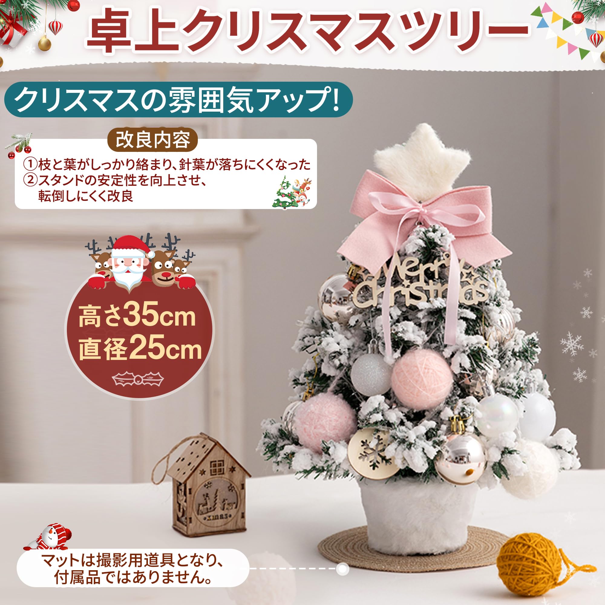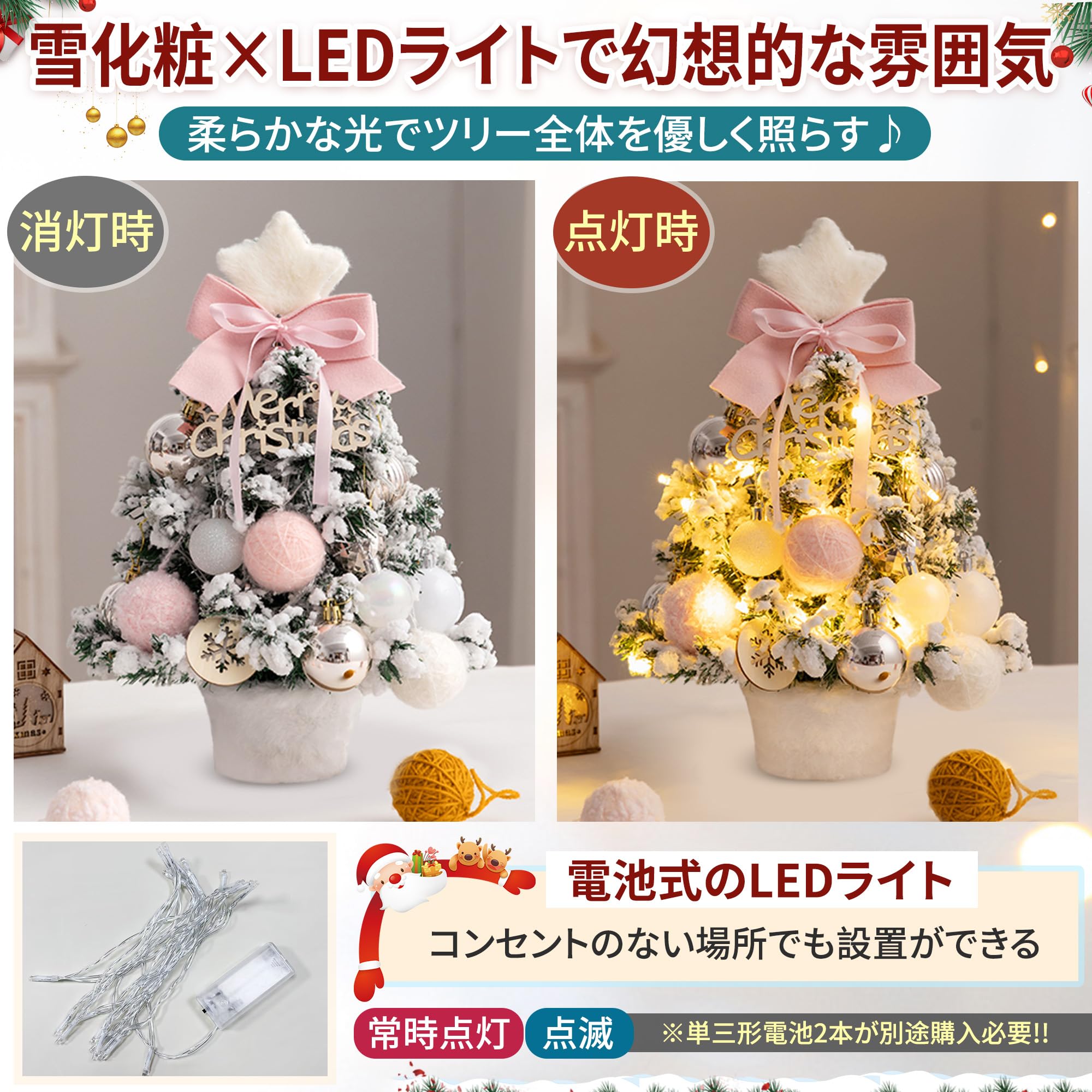 クリスマスツリー 卓上 ミニ ツリー 35cm 【LEDライト付き 電池式 ギフトボックス付 2025新登場】 イルミネーション 飾りつけ おしゃれ 雪化粧 北欧 卓上クリスマスツリー クリスマス飾り DIY 小さめ 飾り 置物 かわいい クリスマスプレゼント ギフト ピンク