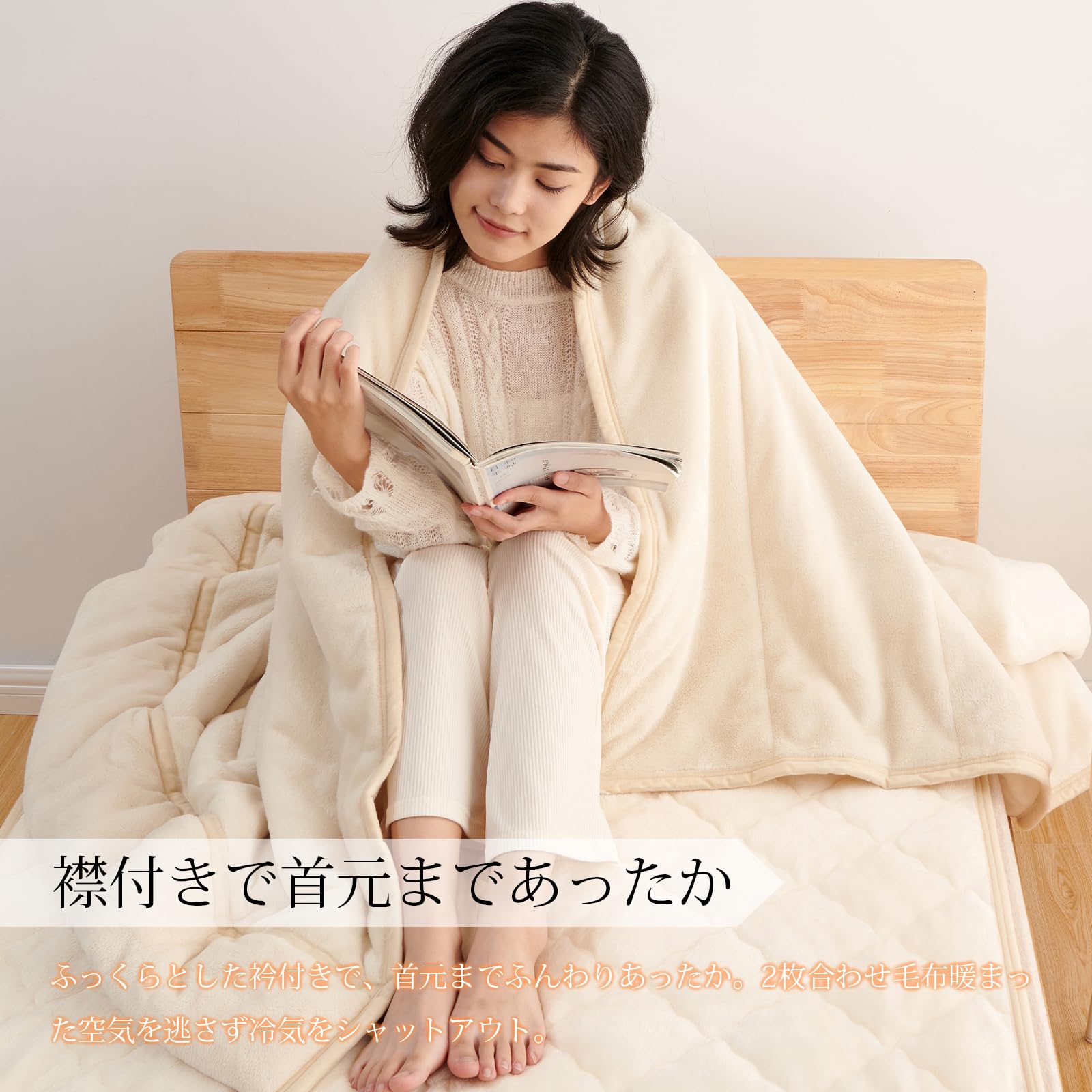Matdeco 毛布 シングル 冬 厚手 ブランケット 冬用 掛け毛布 2枚合わせ 高機能中綿素材シンサート使用 四層構造 襟付き 洗える フランネル 断熱素材 超極細繊維 モフモフ 保温 軽量 毛抜けない 静電気防止 140×200cm アイボリー