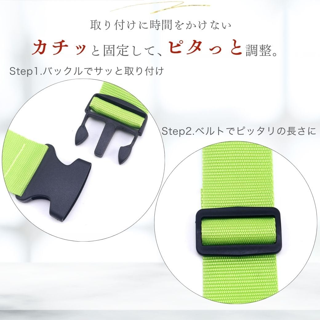 カラフルな組み合わせでアレンジも可能なので、ターンテーブルで荷物の目印にもなる便利なスーツケースベルトです