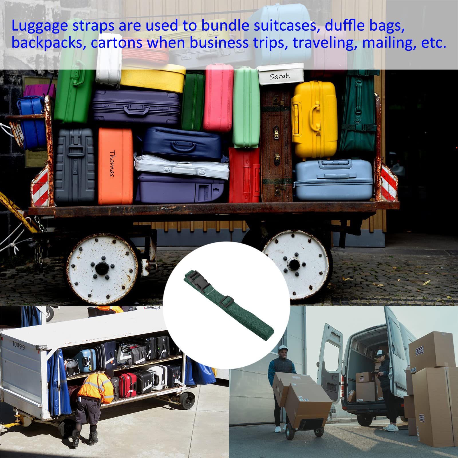 耐久性のあるデザイン: 1. ラゲッジストラップはプラスチックとポリエステルでできており、耐摩耗性があり、変形せず、再利用可能で、荷物を運ぶのが簡単です。2. クイックバックルロック付きの荷物ベルト。接続と取り外しが簡単で、荷物を固定し、輸送中に荷物が誤って開くのを防ぎます。3. ストラップの明るい色は、空港のコンベアベルトから荷物を簡単に識別できるようにし、荷物を探す時間を節約します。