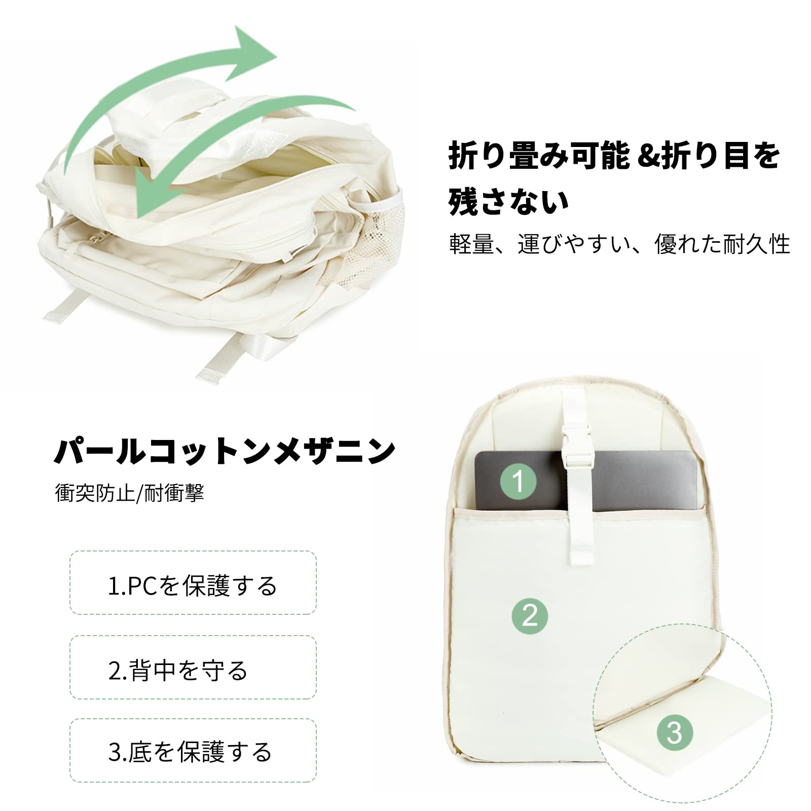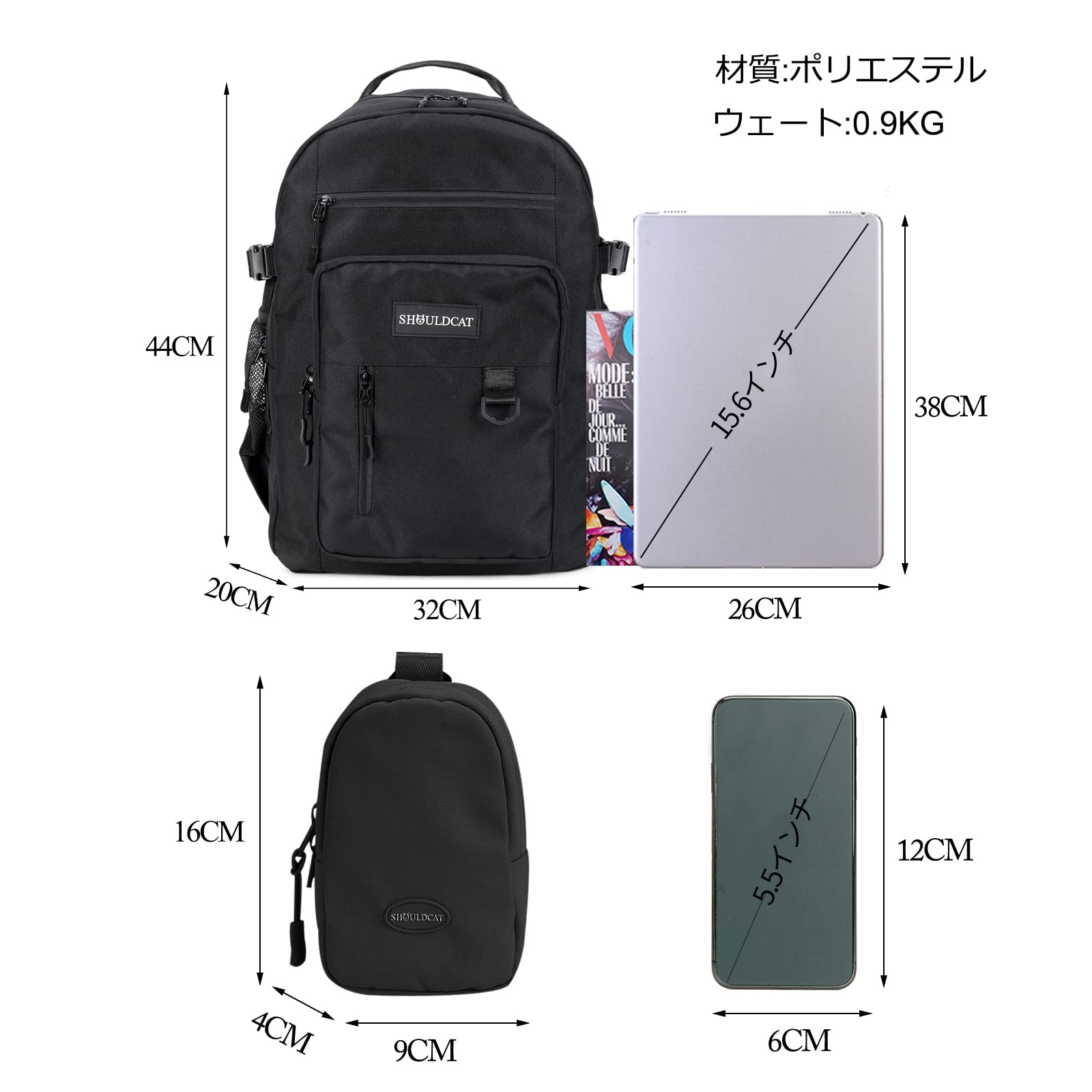 【5層式の大容量構造】★サイズ:32x20x44cm/0.9kg;軽量で容量約28L。収納スペースはたくさんあるのでとても便利です。★メインルームは15.6インチまでのノートパソコンを収納できます。★サブポケットが大きくて仕切りもついて、A4サイズの書類などが余裕に入れます。★フロントにはたくさんの小さなポケットが付いており、小物をスッキリと整理整頓しながら収納スペースを確保できます。